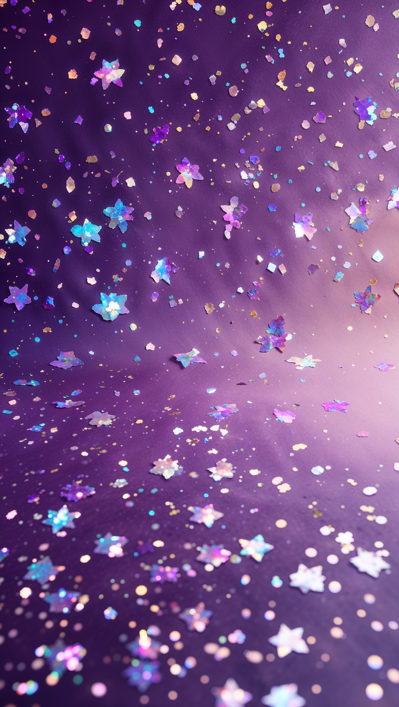 1664x2944 Deep purple background with large glitter flakes and soft illumination