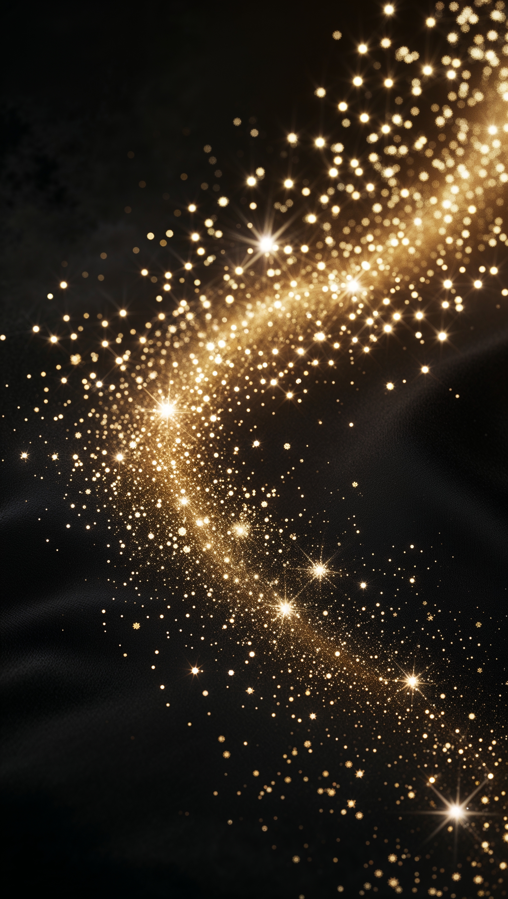 1664x2944 Golden sparkle rain on a dark background with elegant shimmer trail