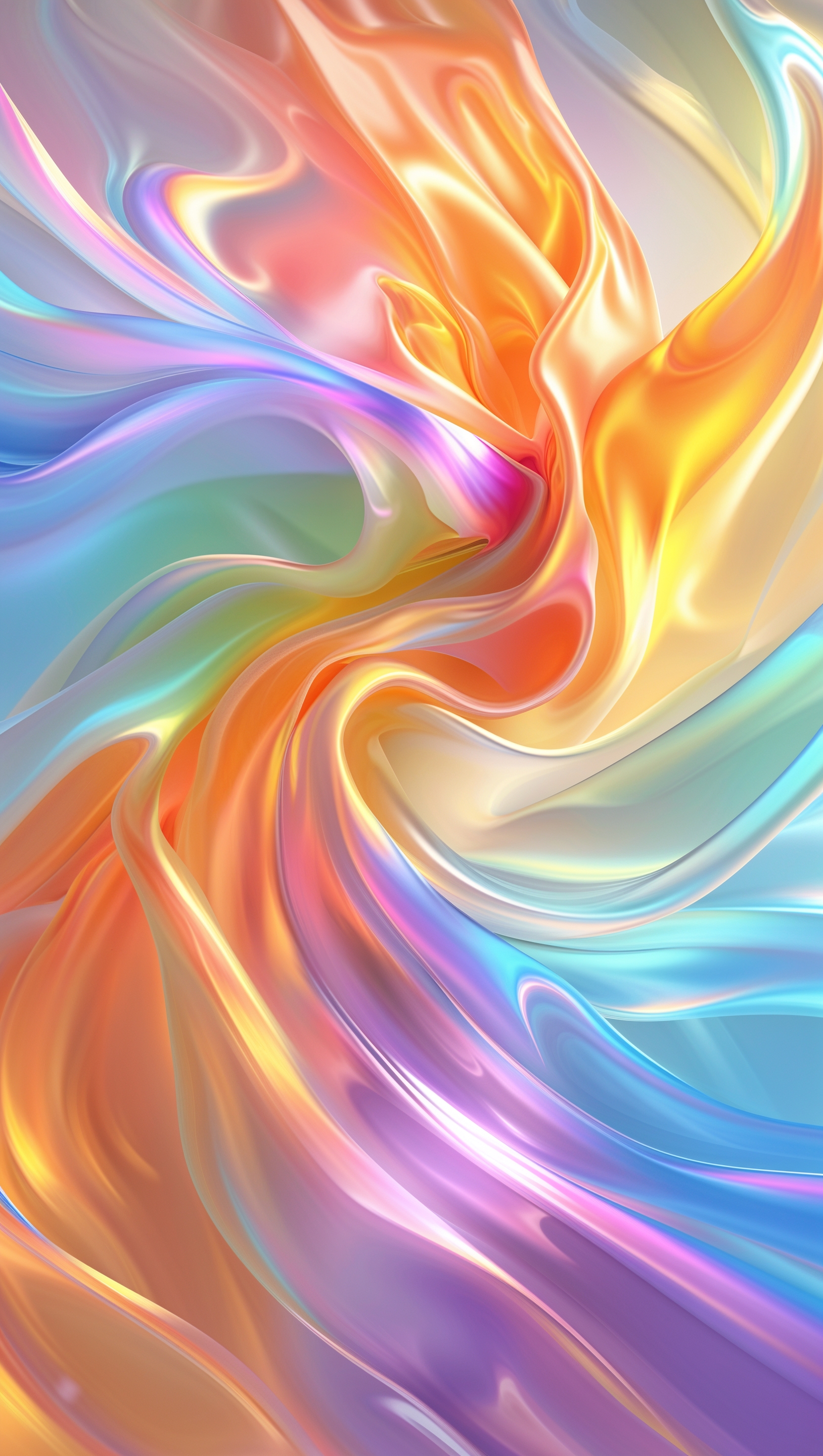 1664x2944 Iridescent fluid shapes in dynamic motion, soft glow and rainbow tints