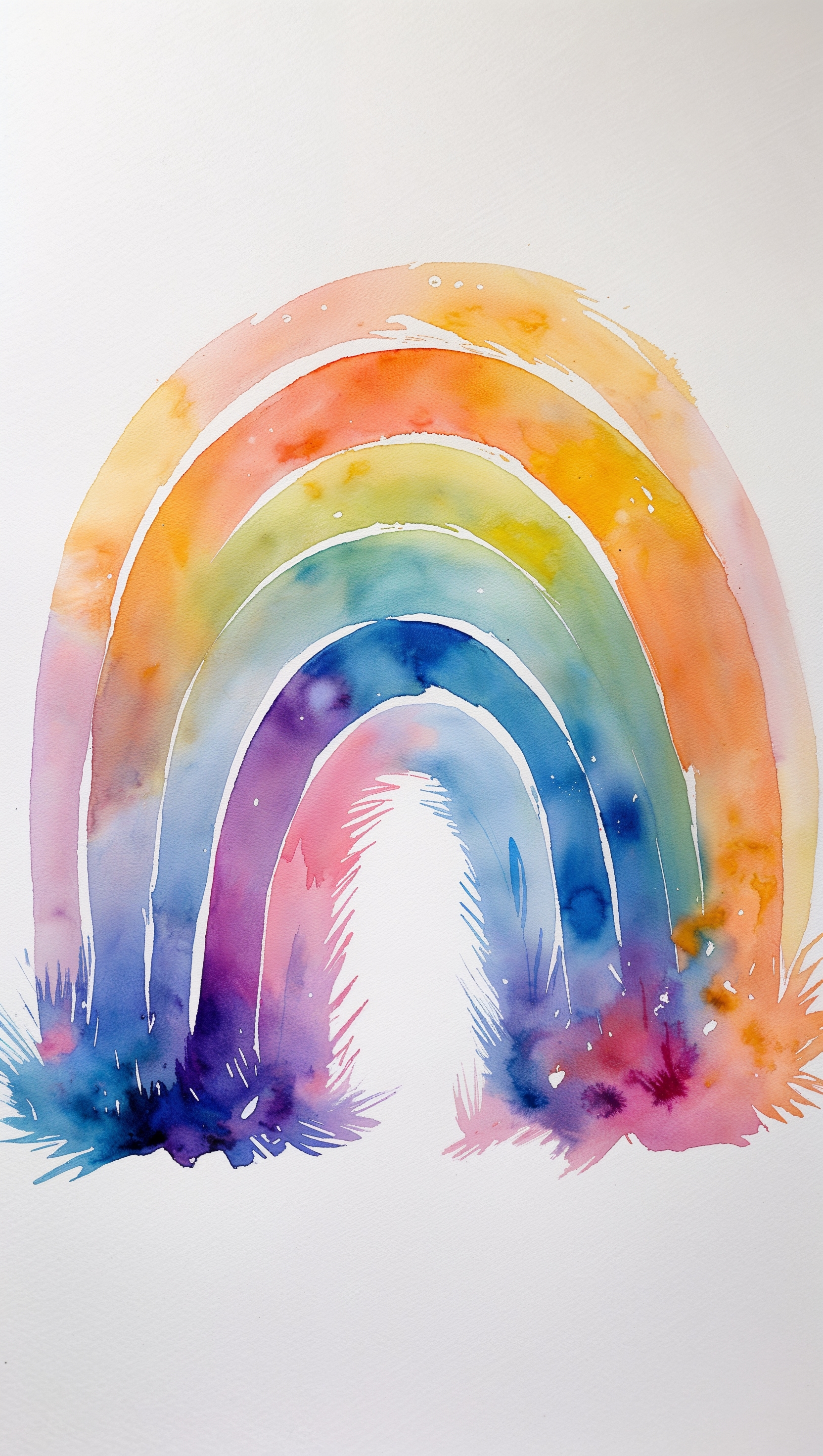 1664x2944 Splashy watercolor rainbow with soft paper texture, artistic aesthetic