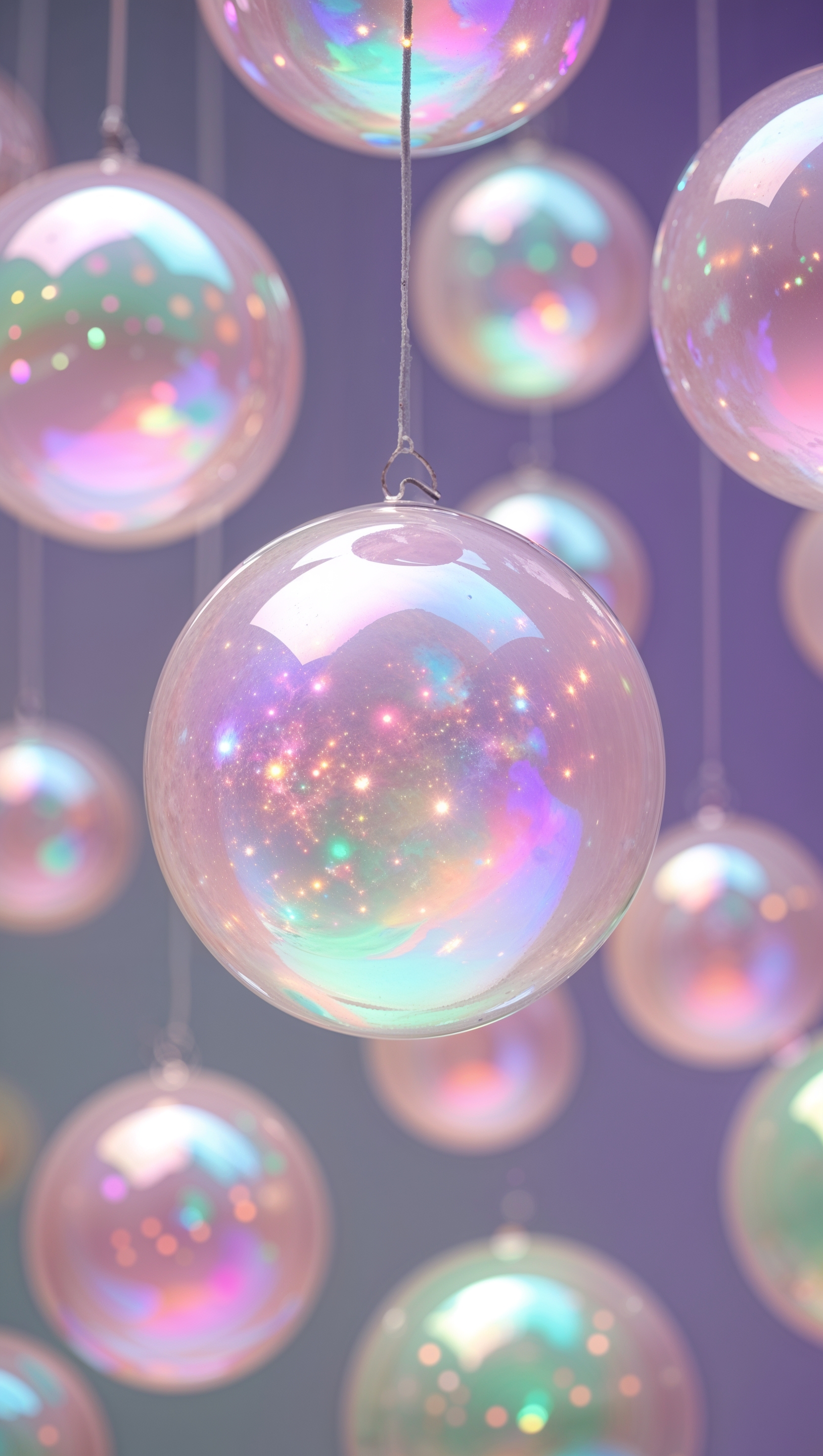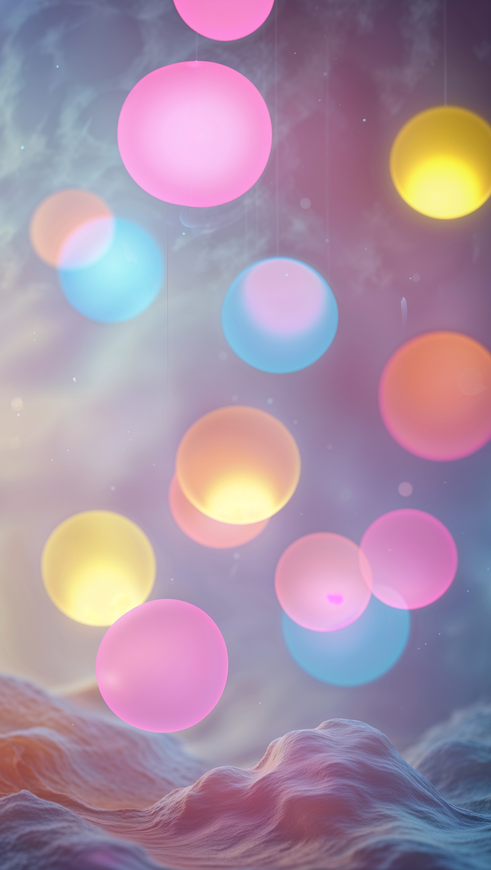 1664x2944 Floating colorful orbs with light reflections and pastel gradients