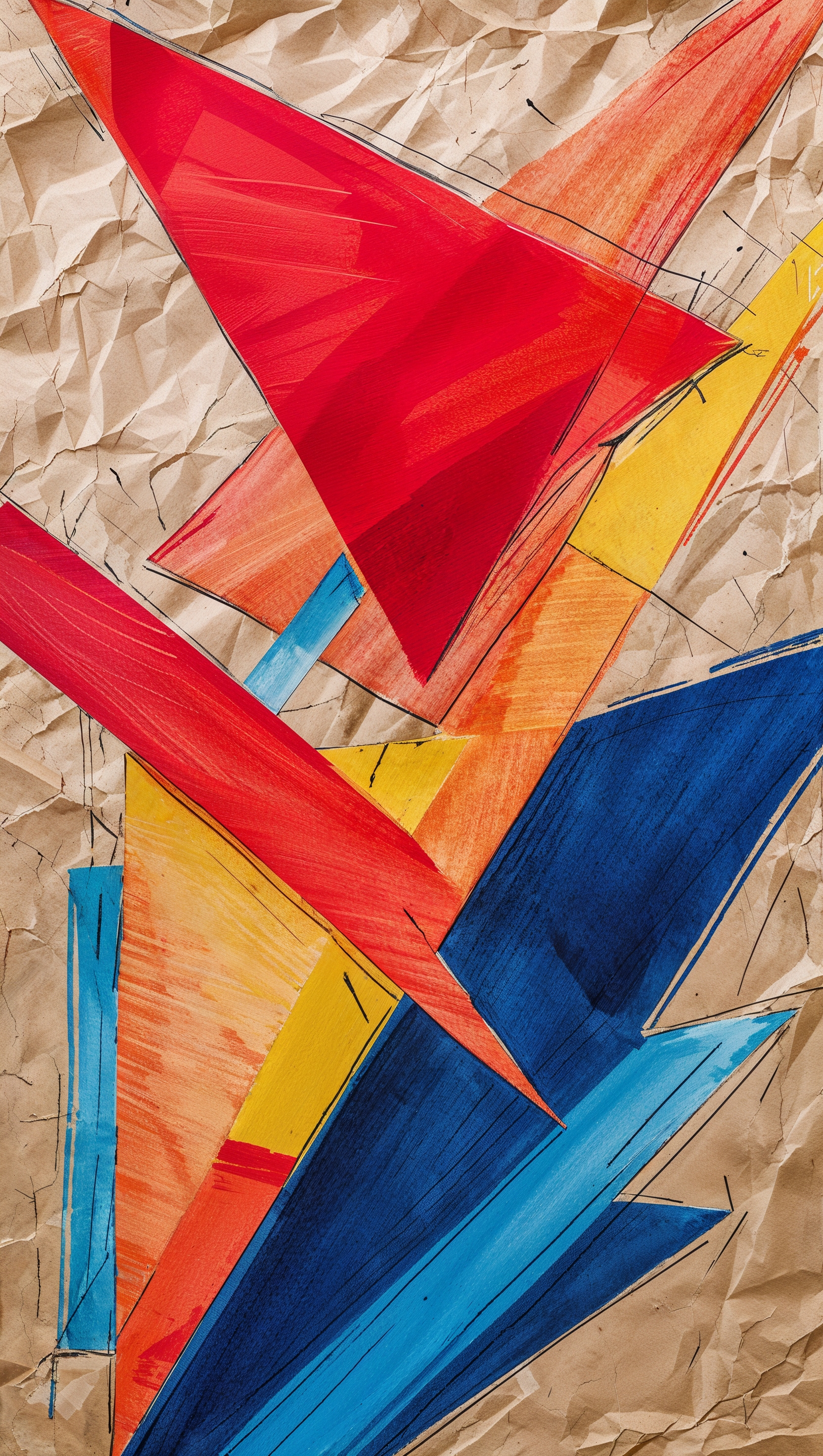 1664x2944 Hand-drawn geometric shapes in bold colors on paper texture background