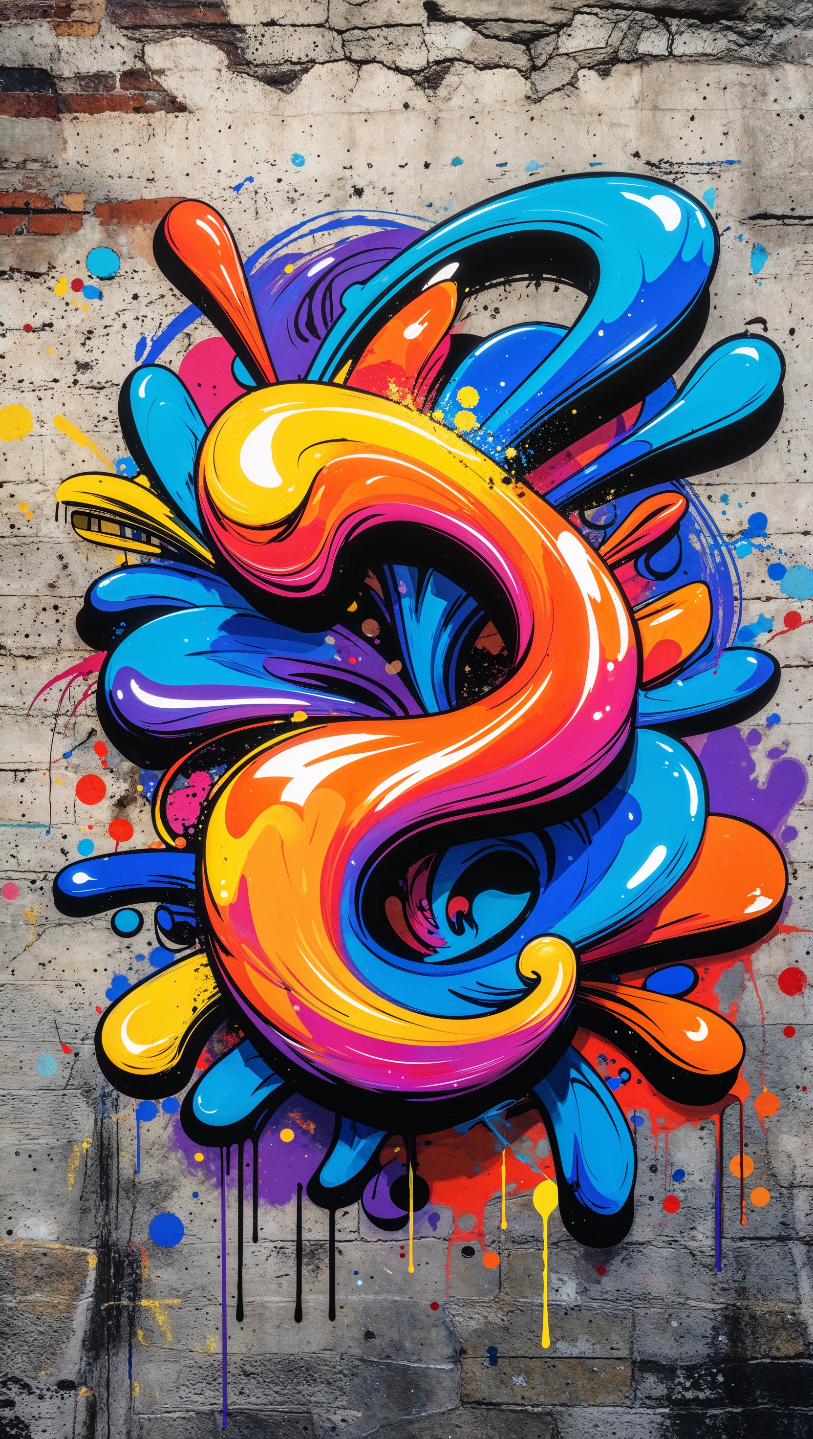 1664x2944 Stylized graffiti art with multicolor spray effect, urban and bold