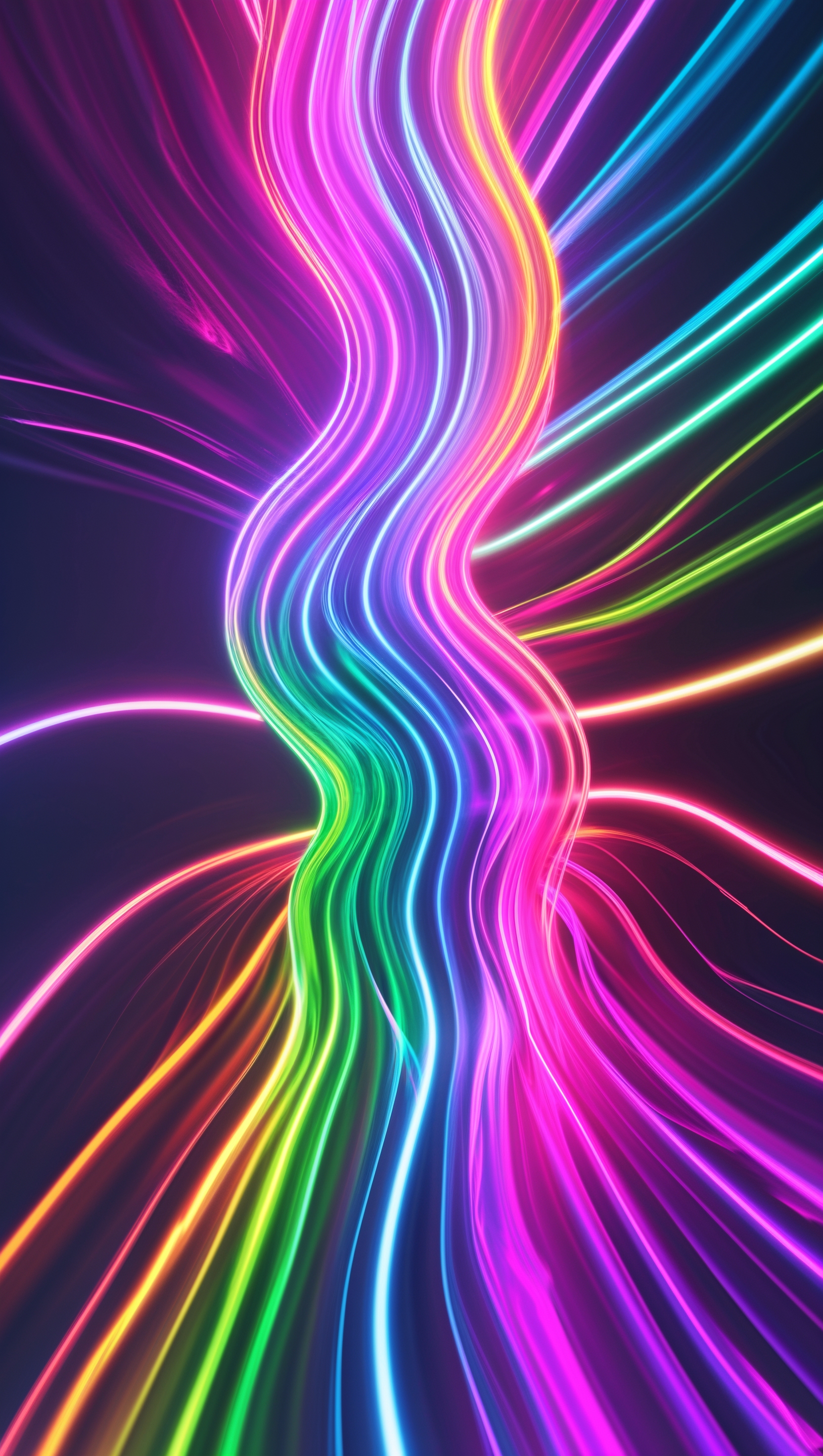 1664x2944 Bright neon abstract waves in pink, cyan, and purple tones, vertical format