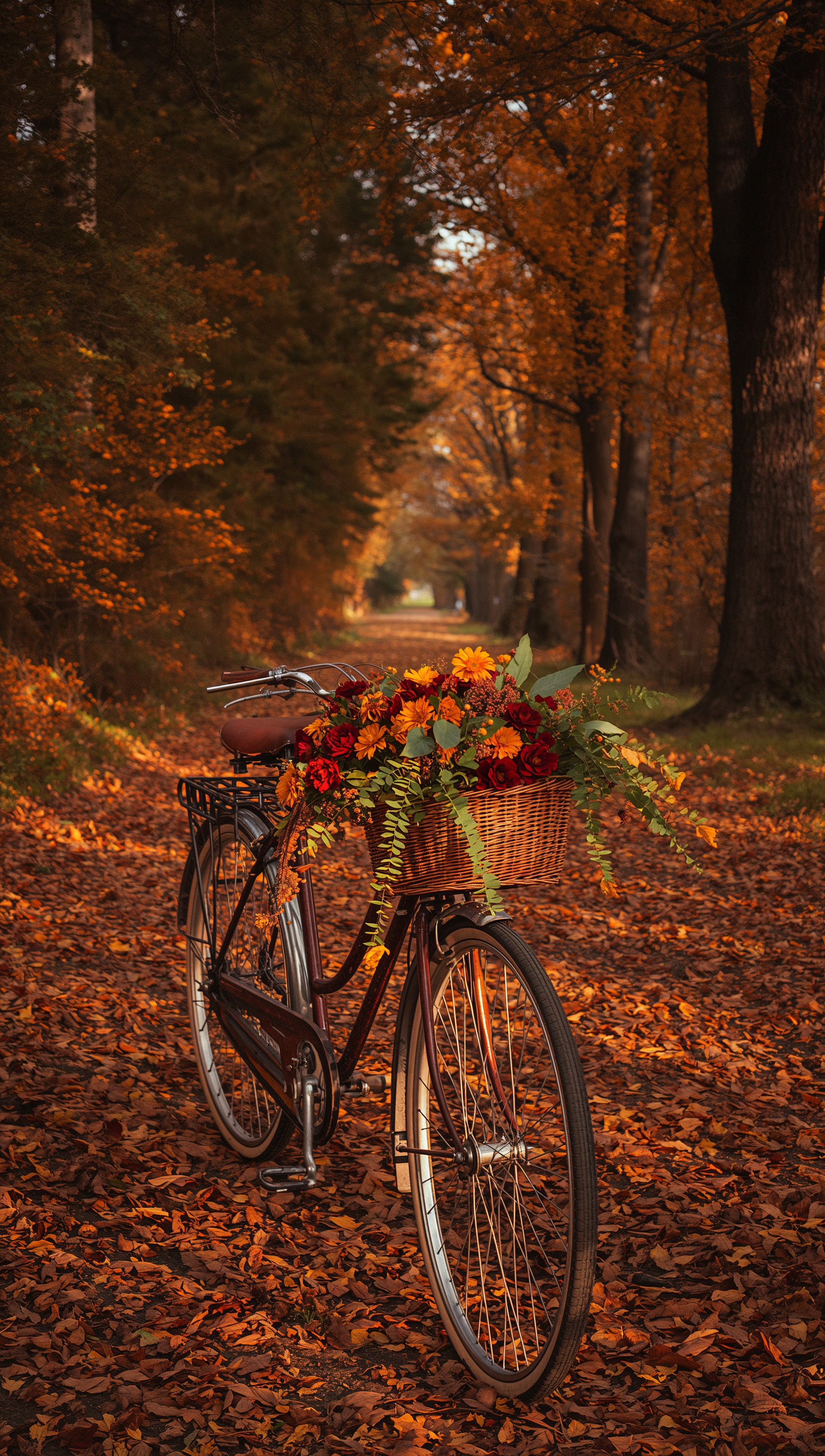 2176x3840 October iPhone wallpaper – bicycle on autumn path