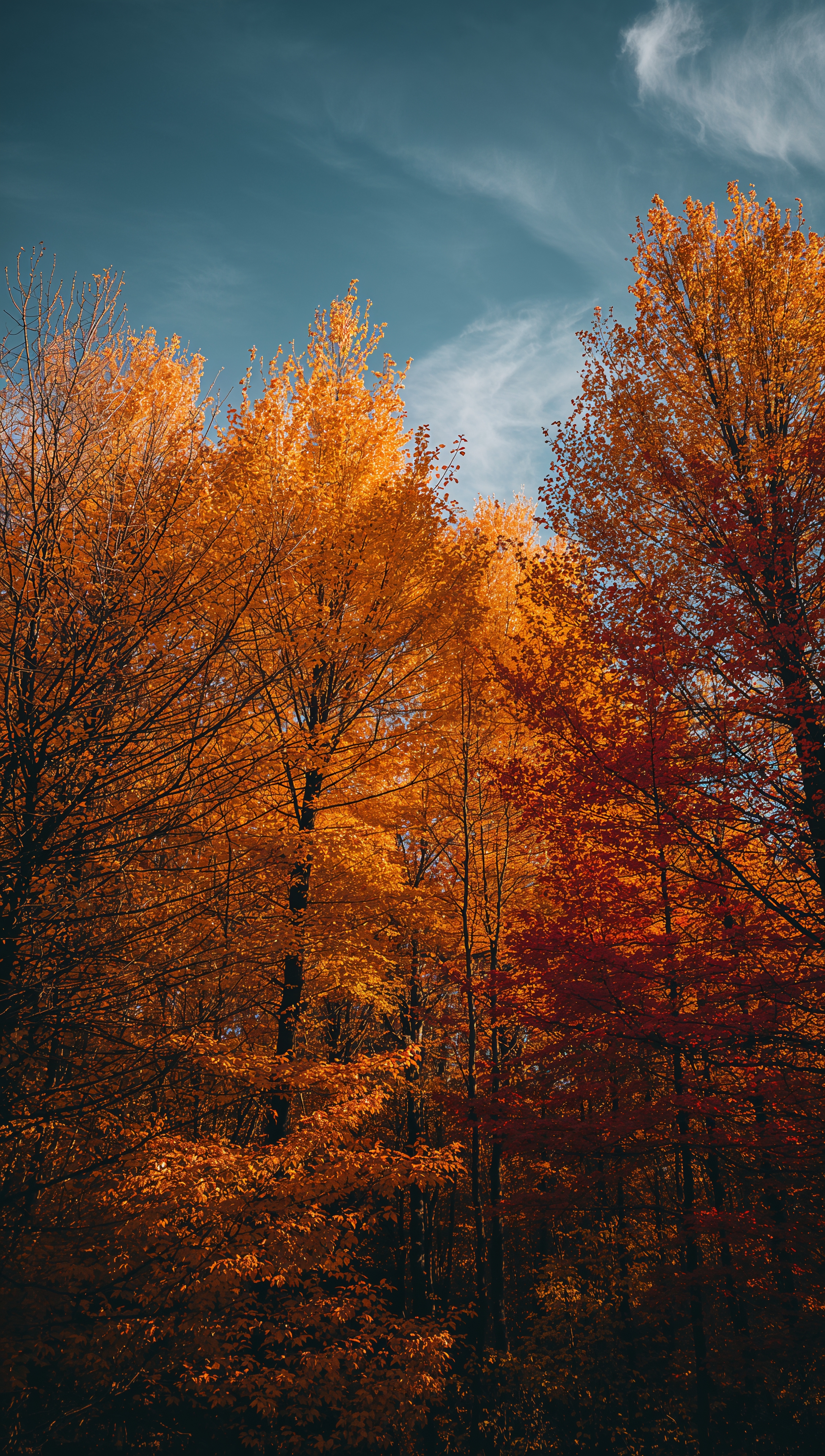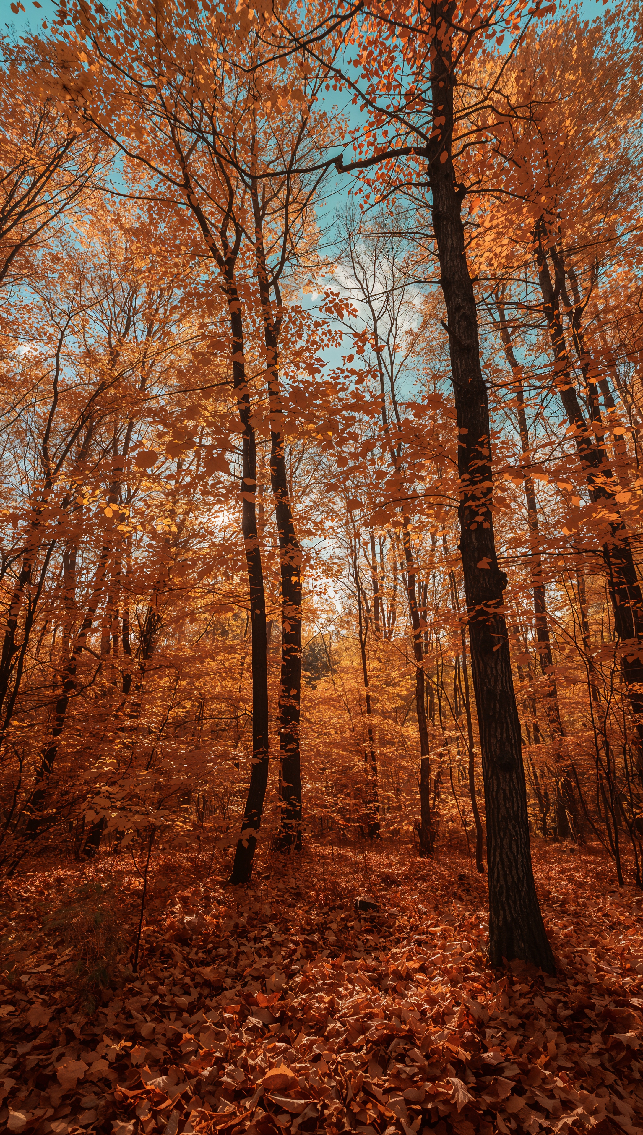 2176x3840 October iPhone wallpaper – golden forest with autumn leaves