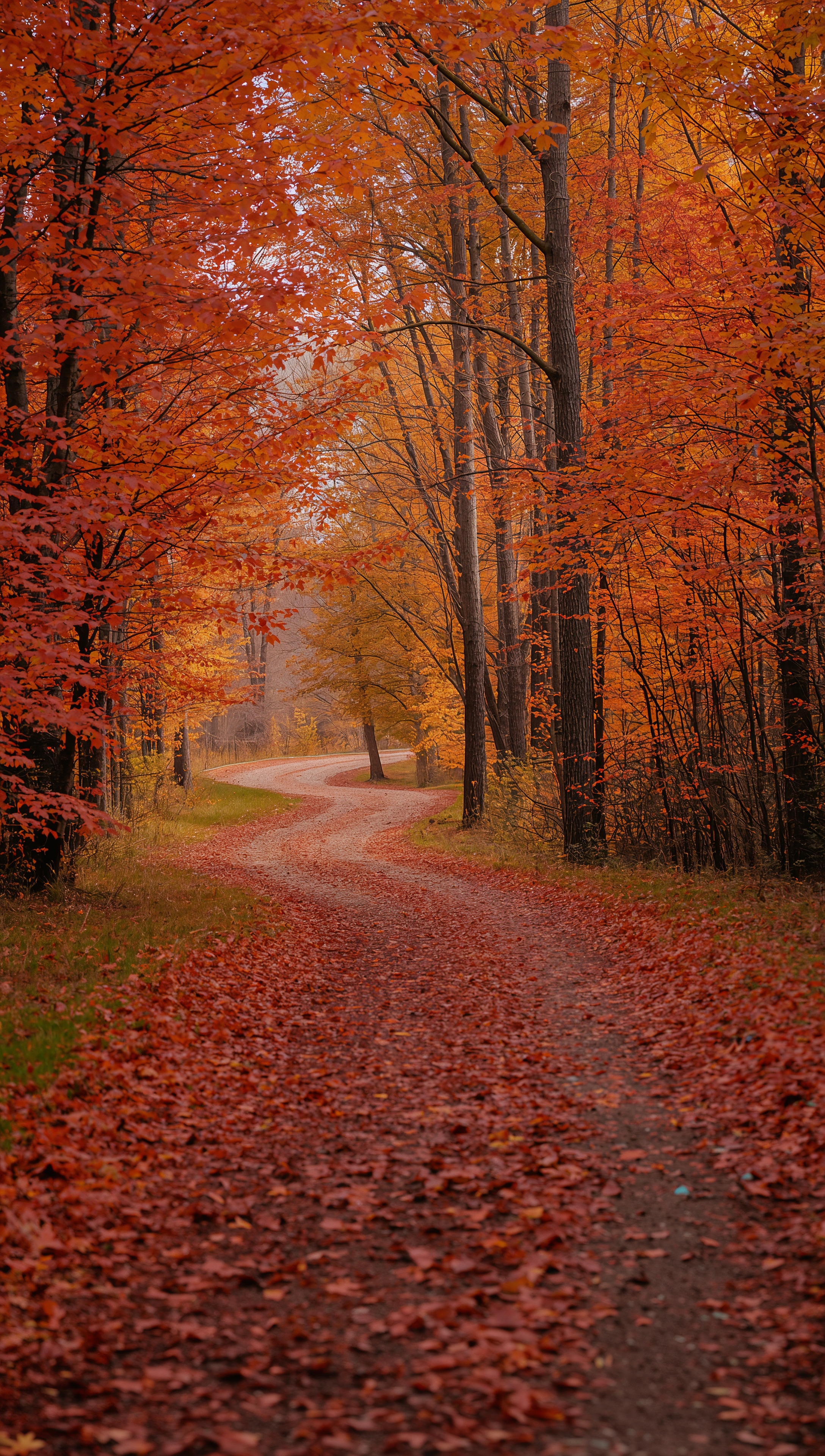 2176x3840 October iPhone wallpaper – path with maple leaves