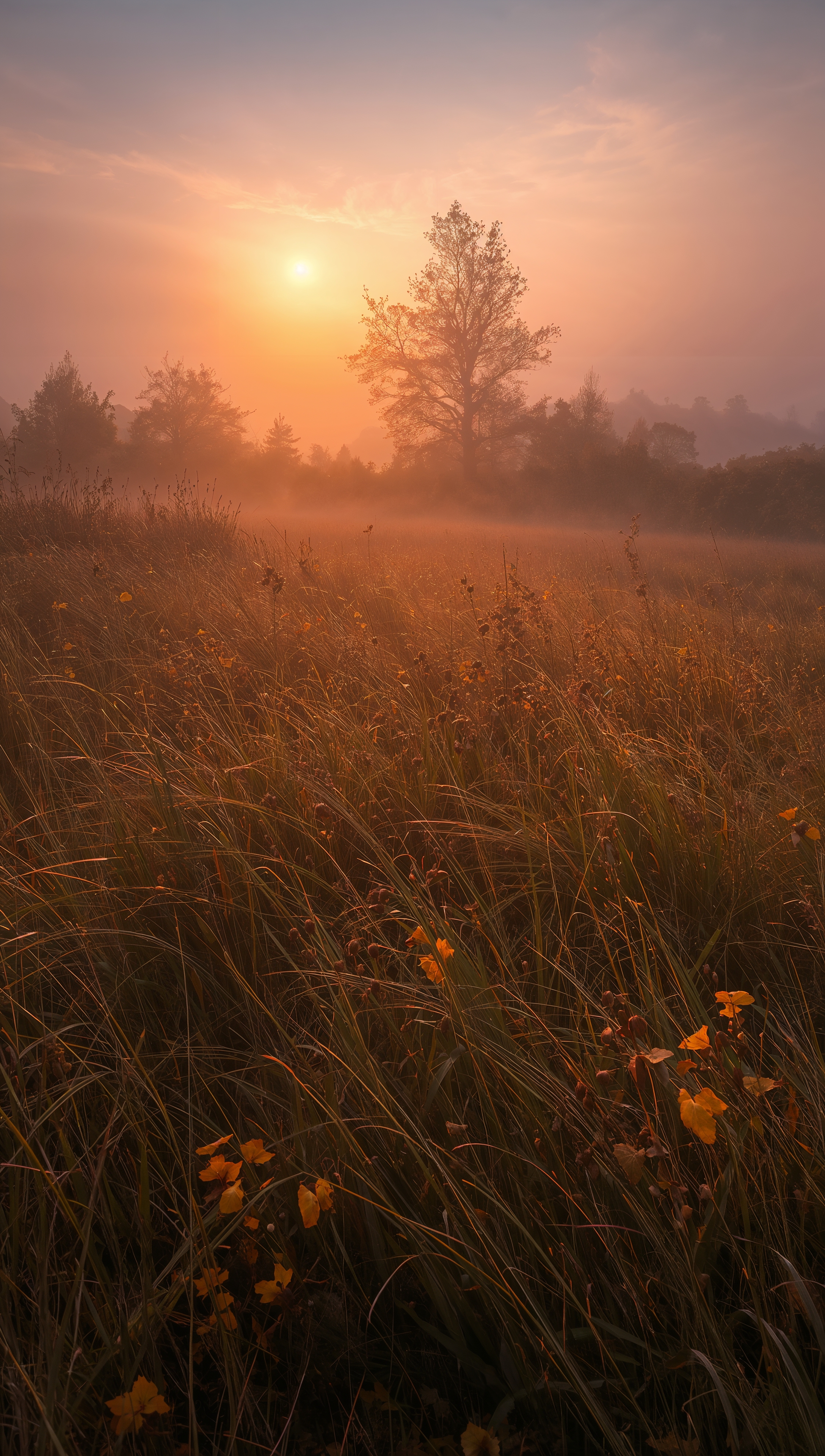 2176x3840 October iPhone wallpaper – sunrise over autumn meadow