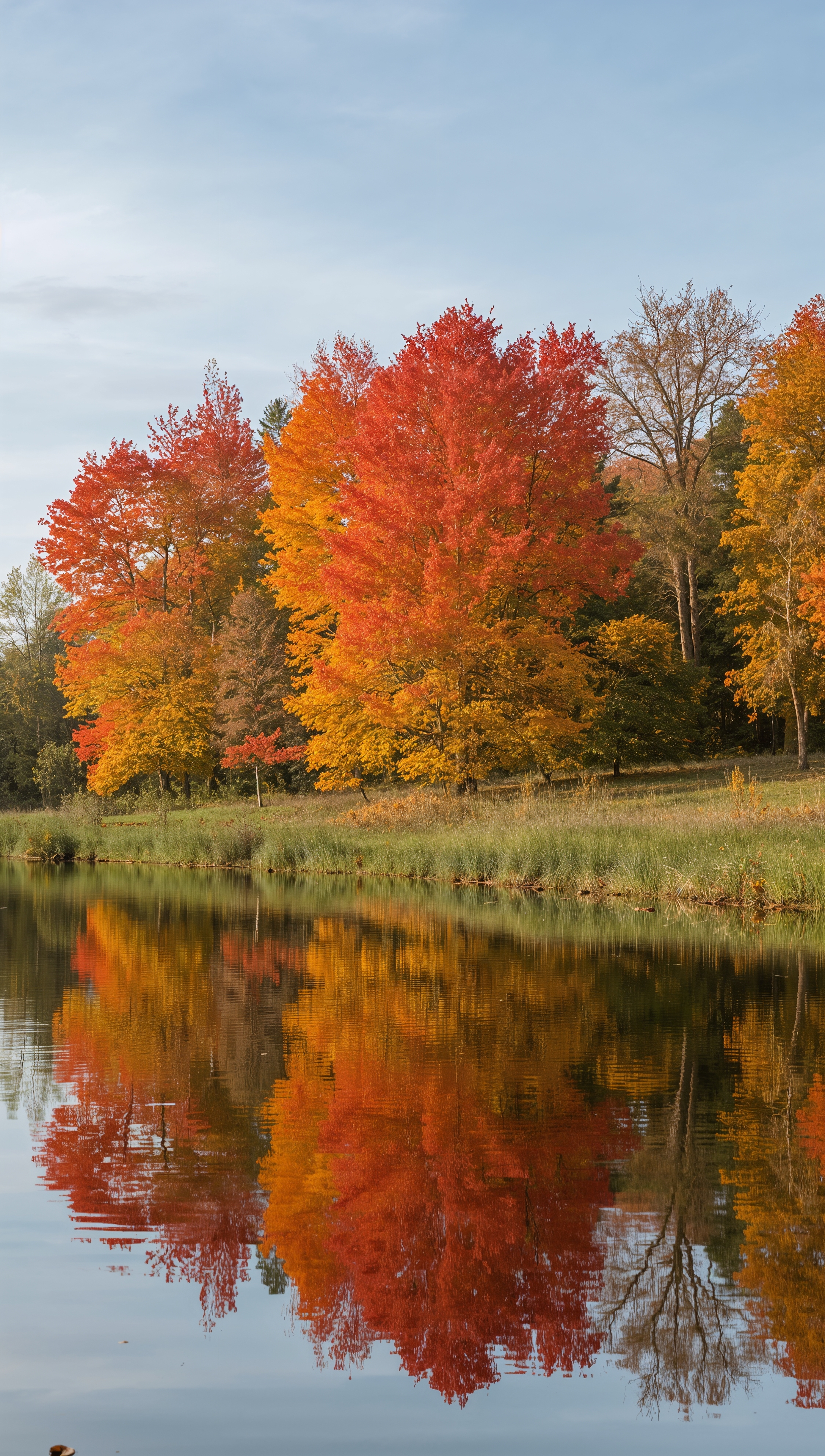 2176x3840 October iPhone wallpaper – autumn lake reflection