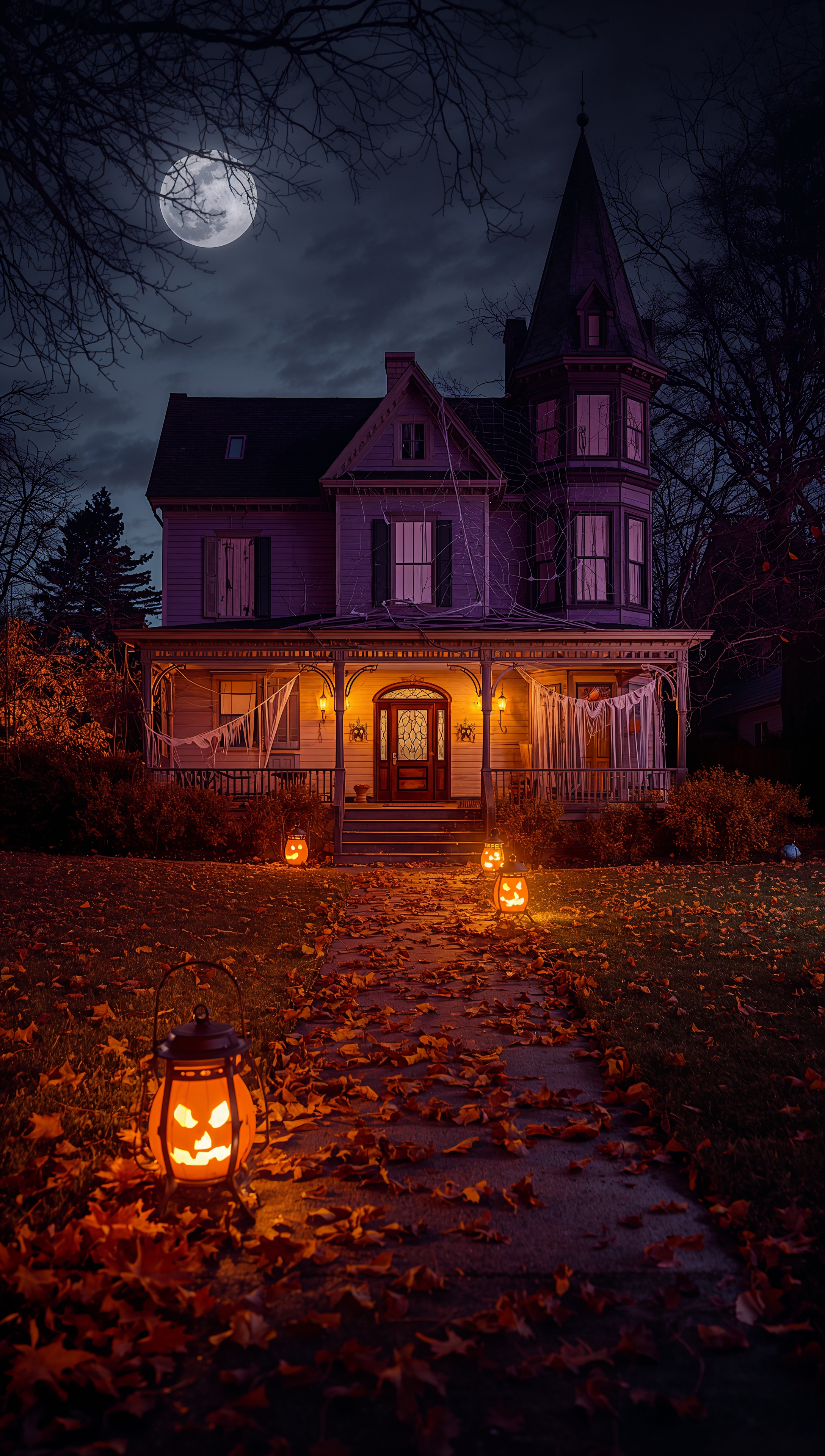 2176x3840 October iPhone wallpaper – Halloween house at night