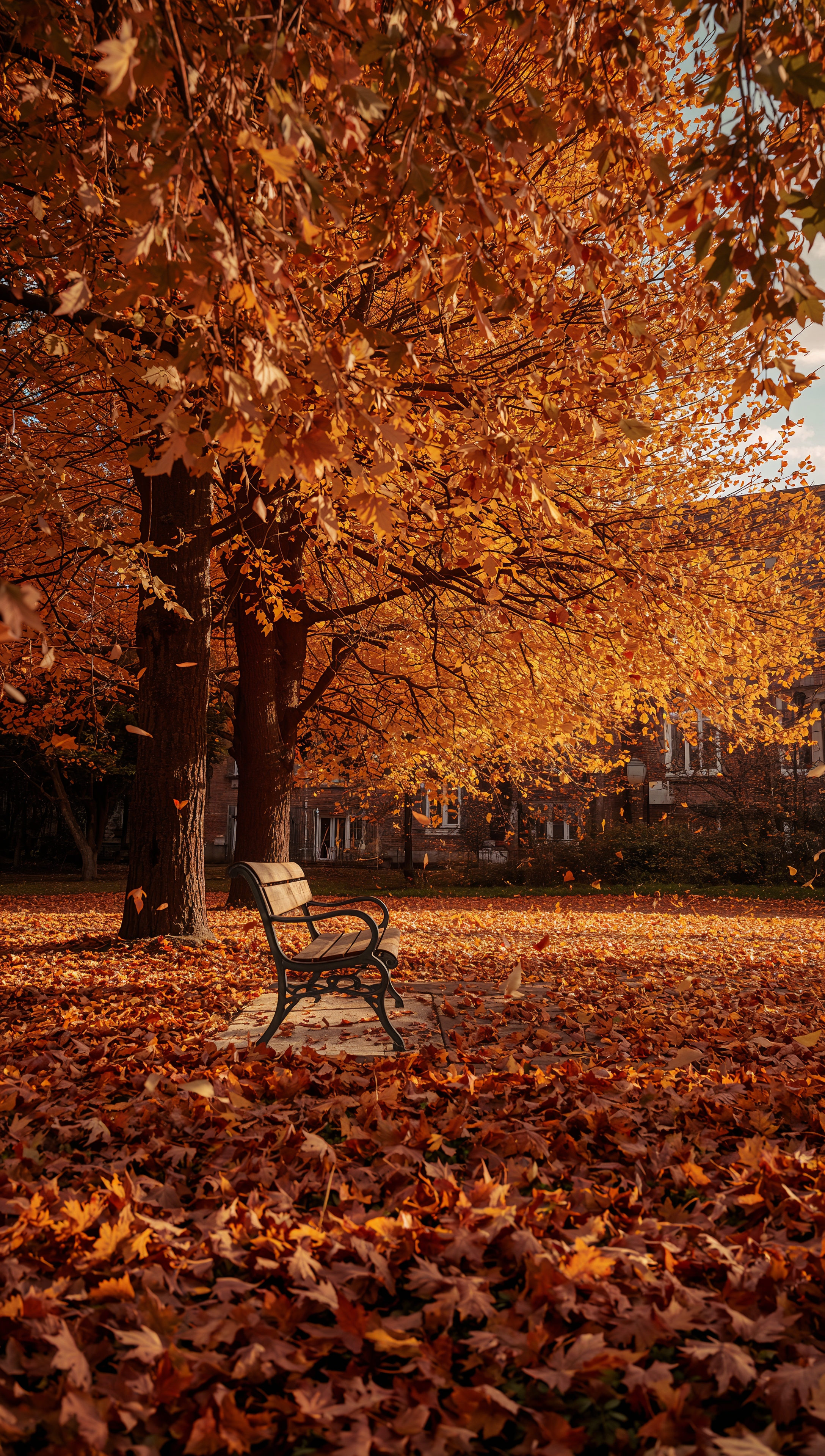 2176x3840 October iPhone wallpaper – bench in autumn park