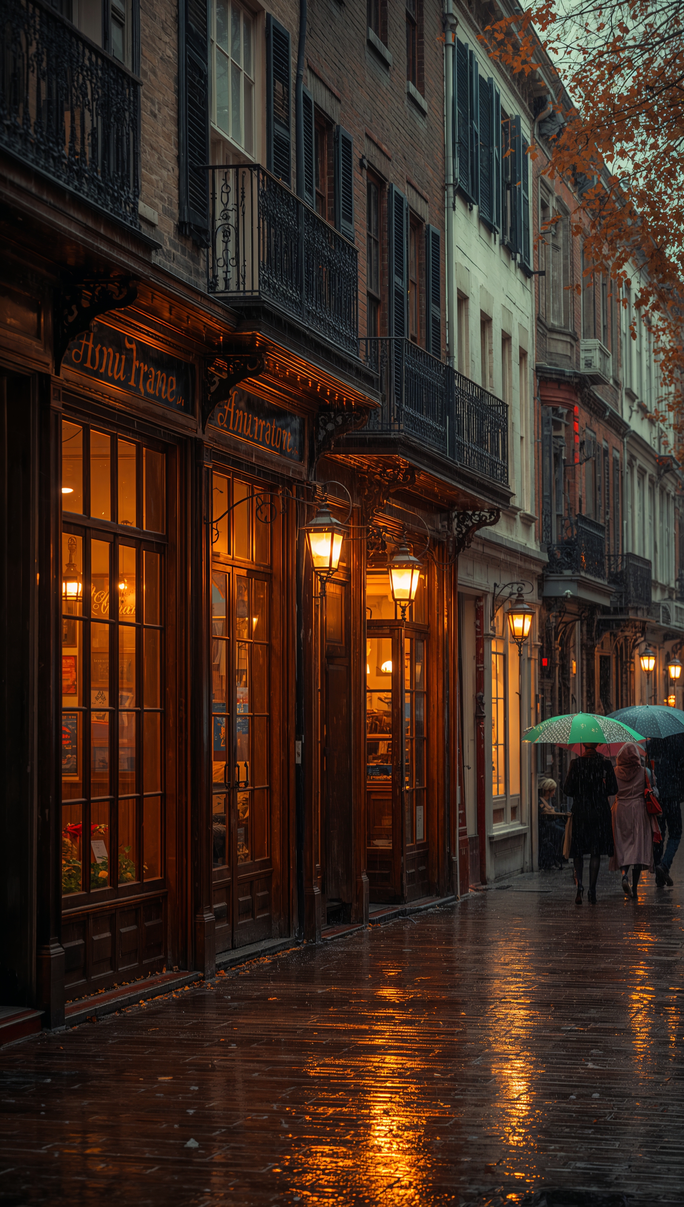 2176x3840 October iPhone wallpaper – rainy autumn street