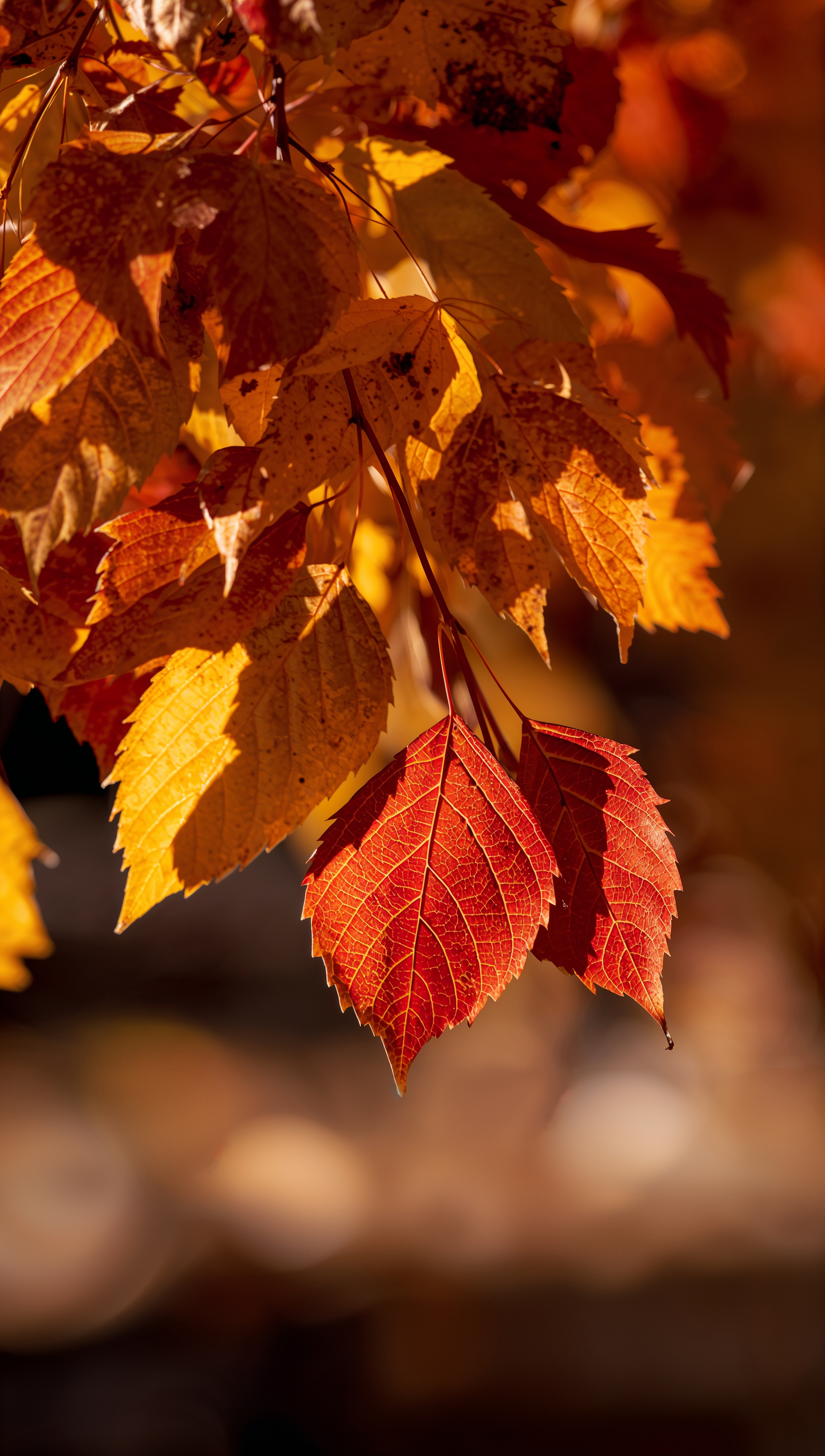 2176x3840 October iPhone wallpaper – close-up of autumn leaves
