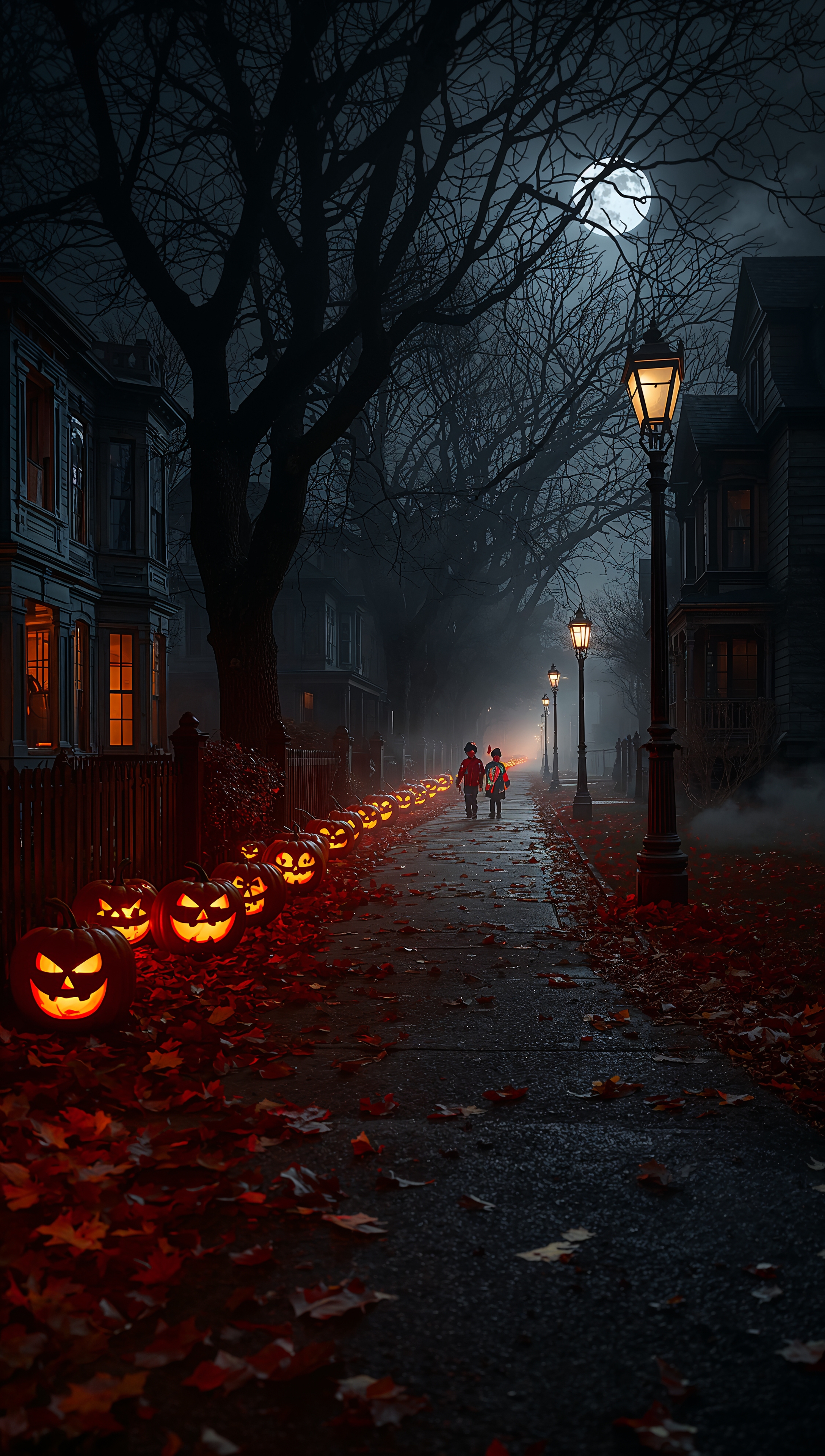 2176x3840 October iPhone wallpaper – Halloween pumpkins at night