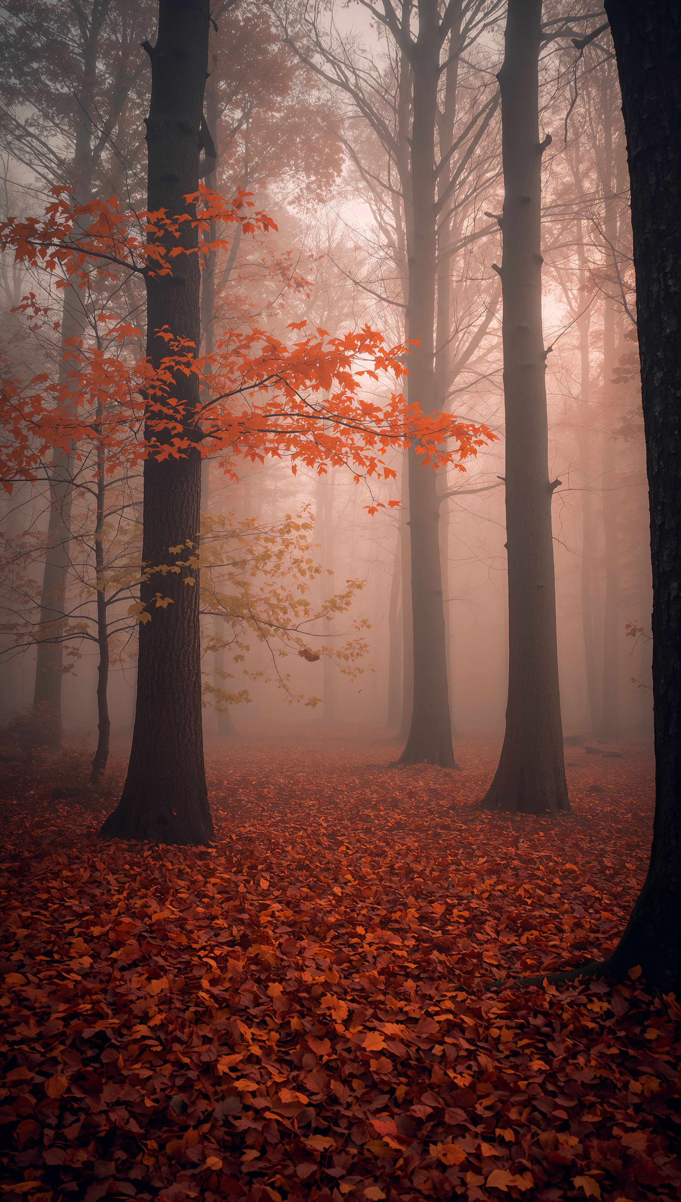 2176x3840 October iPhone wallpaper – misty autumn forest morning