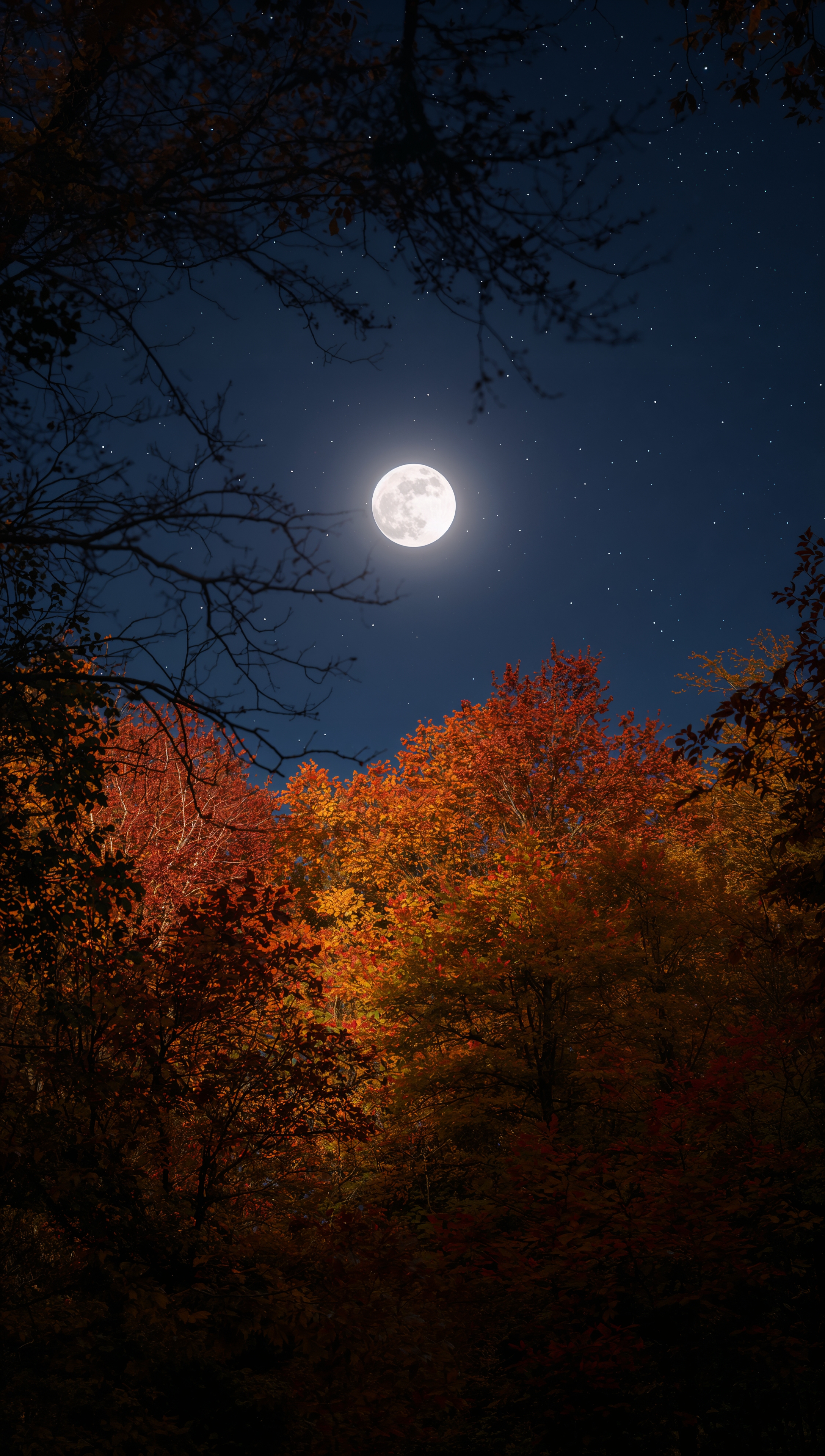 2176x3840 October iPhone wallpaper – full moon in autumn forest