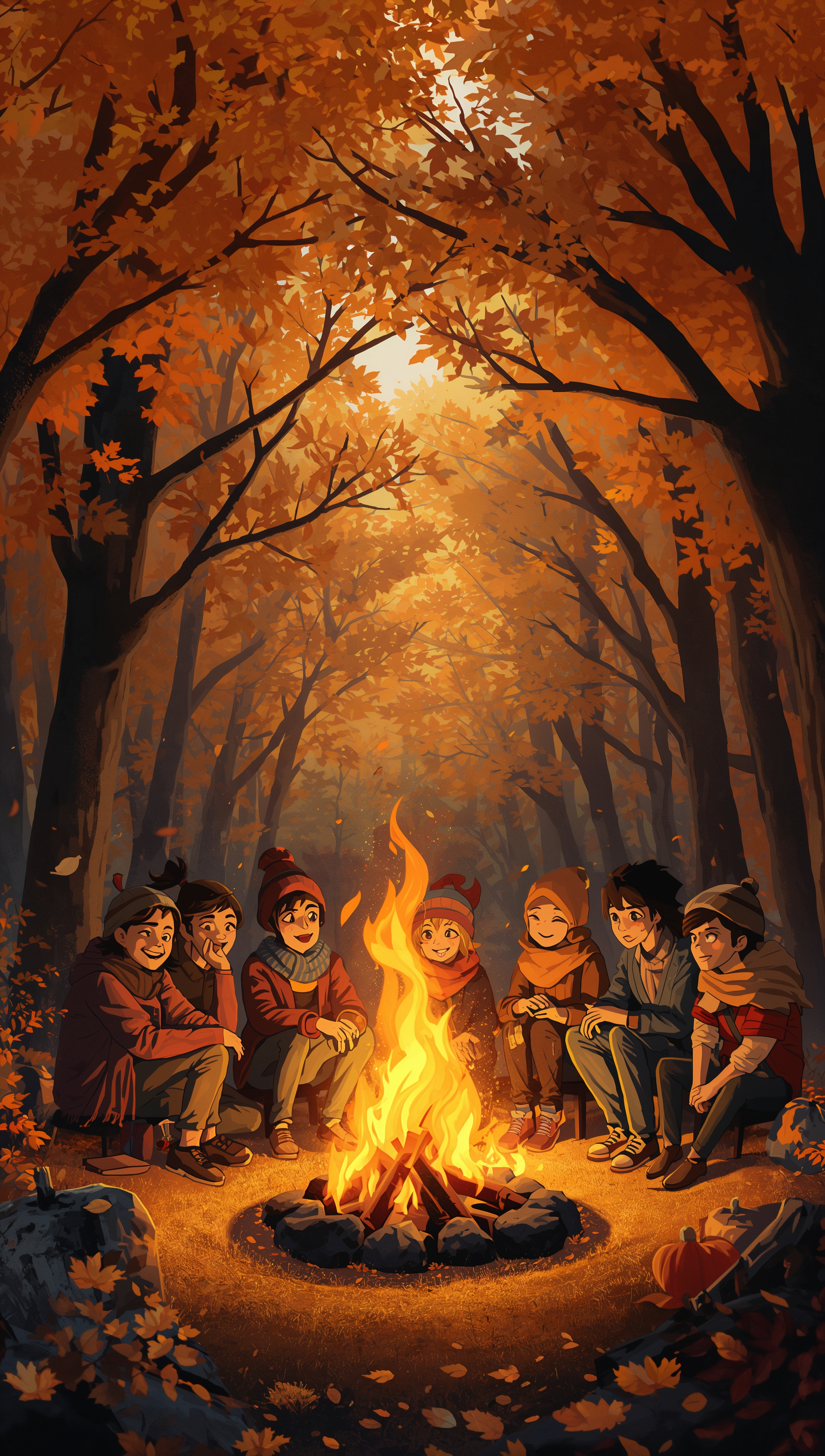 2176x3840 October iPhone wallpaper – campfire in autumn woods