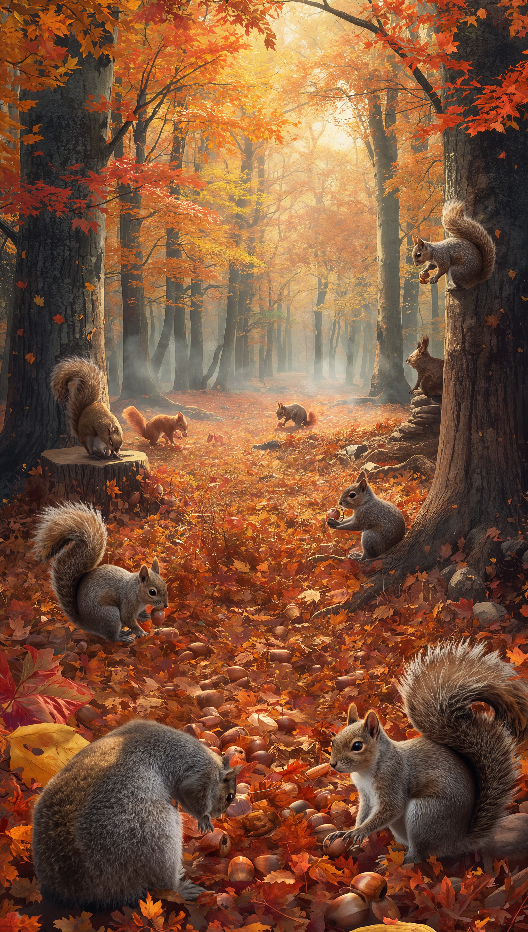 2176x3840 October iPhone wallpaper – squirrels in autumn forest