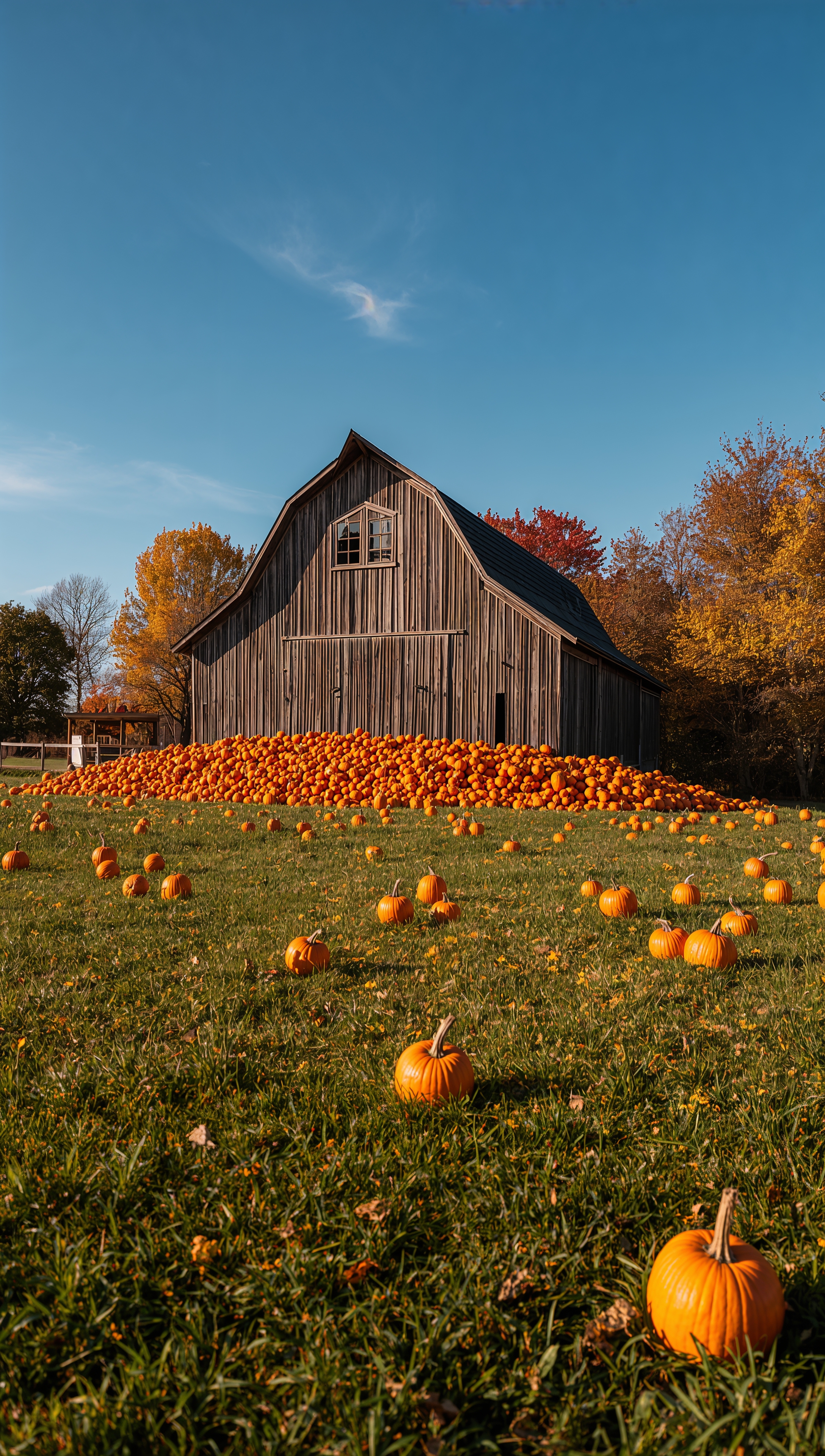 2176x3840 October iPhone wallpaper – barn with pumpkins in autumn