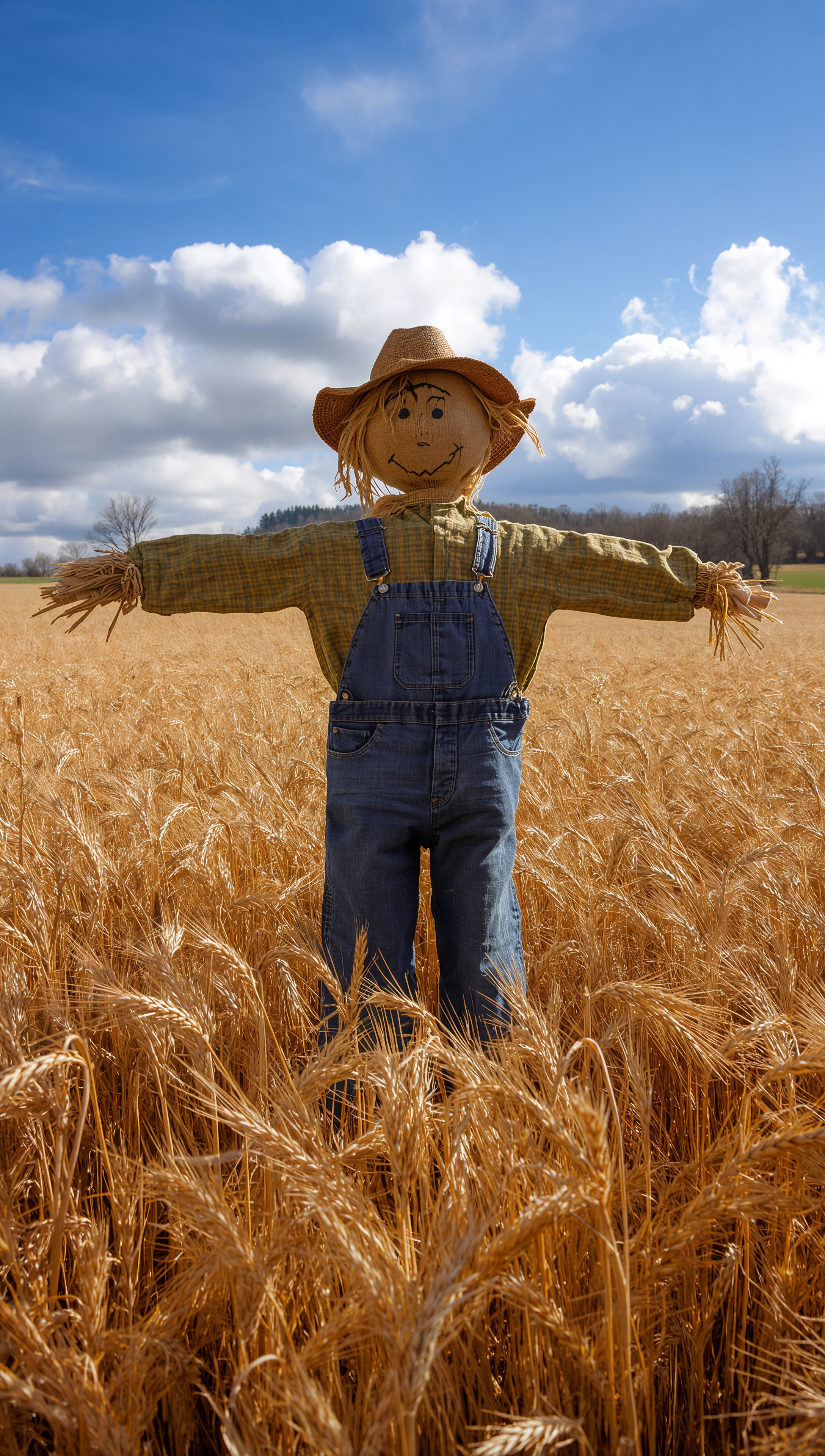 2176x3840 October iPhone wallpaper – scarecrow in autumn field