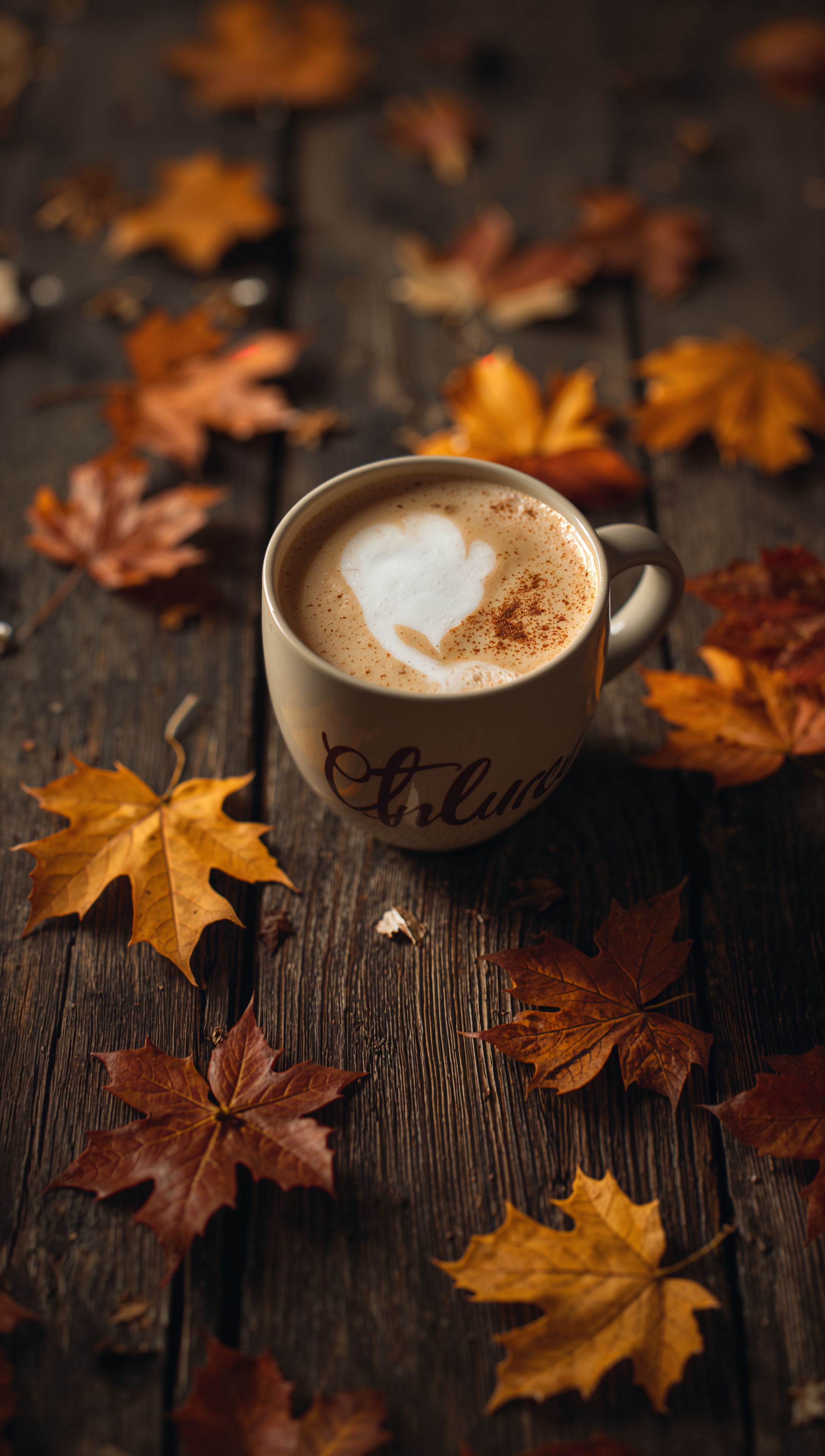 2176x3840 October iPhone wallpaper – autumn coffee scene