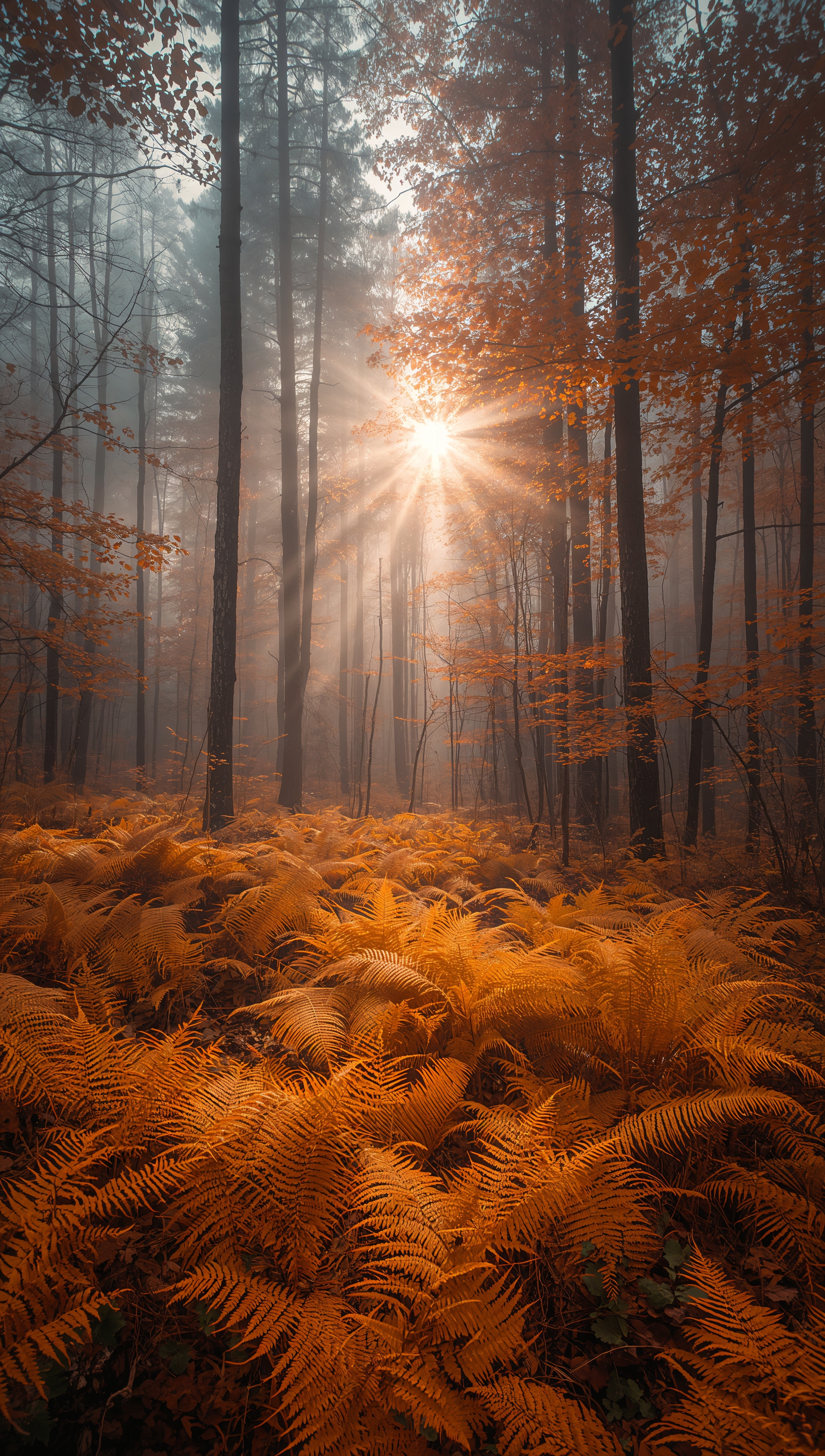 2176x3840 October iPhone wallpaper – golden ferns in autumn forest