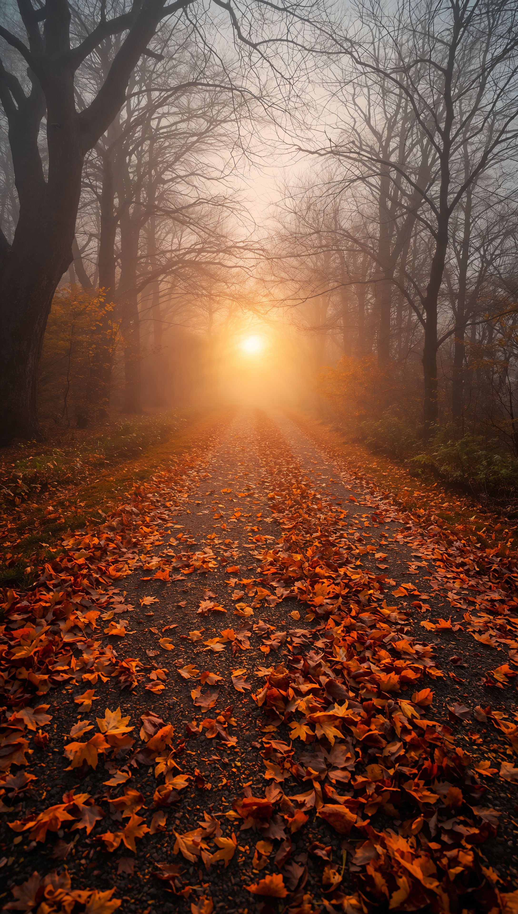 2176x3840 October iPhone wallpaper – foggy autumn path