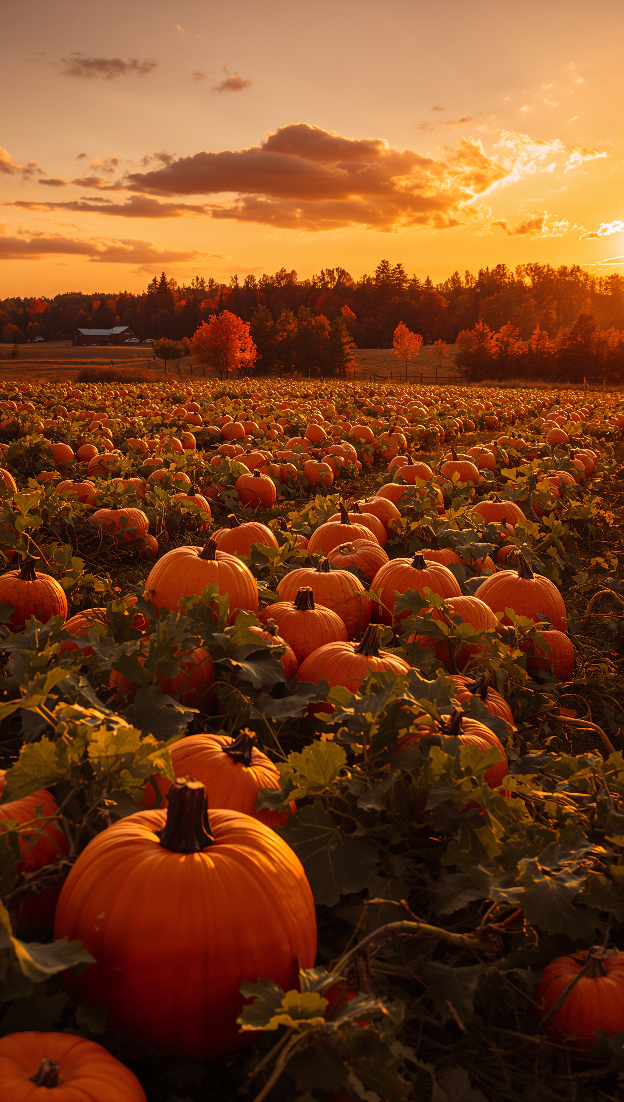 2176x3840 October iPhone wallpaper – pumpkin field at sunset