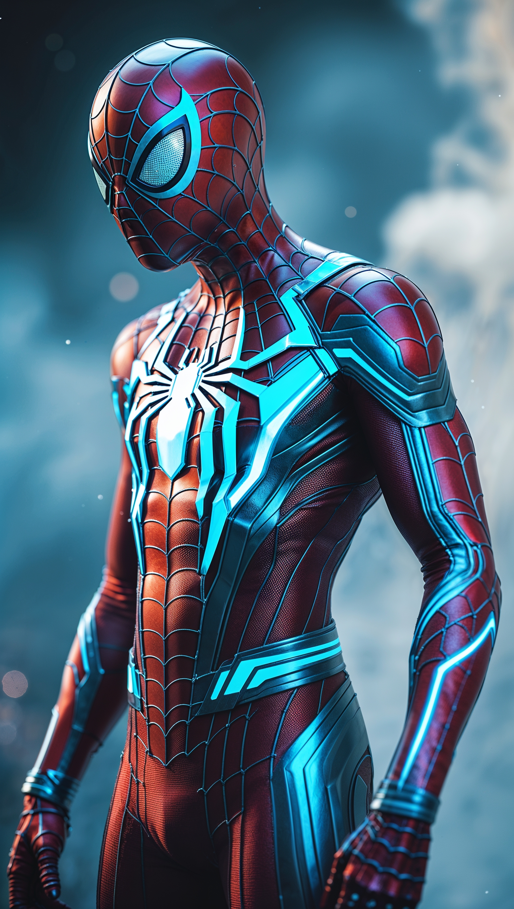 1664x2944 Sci-fi Spider-Man with advanced technological armor