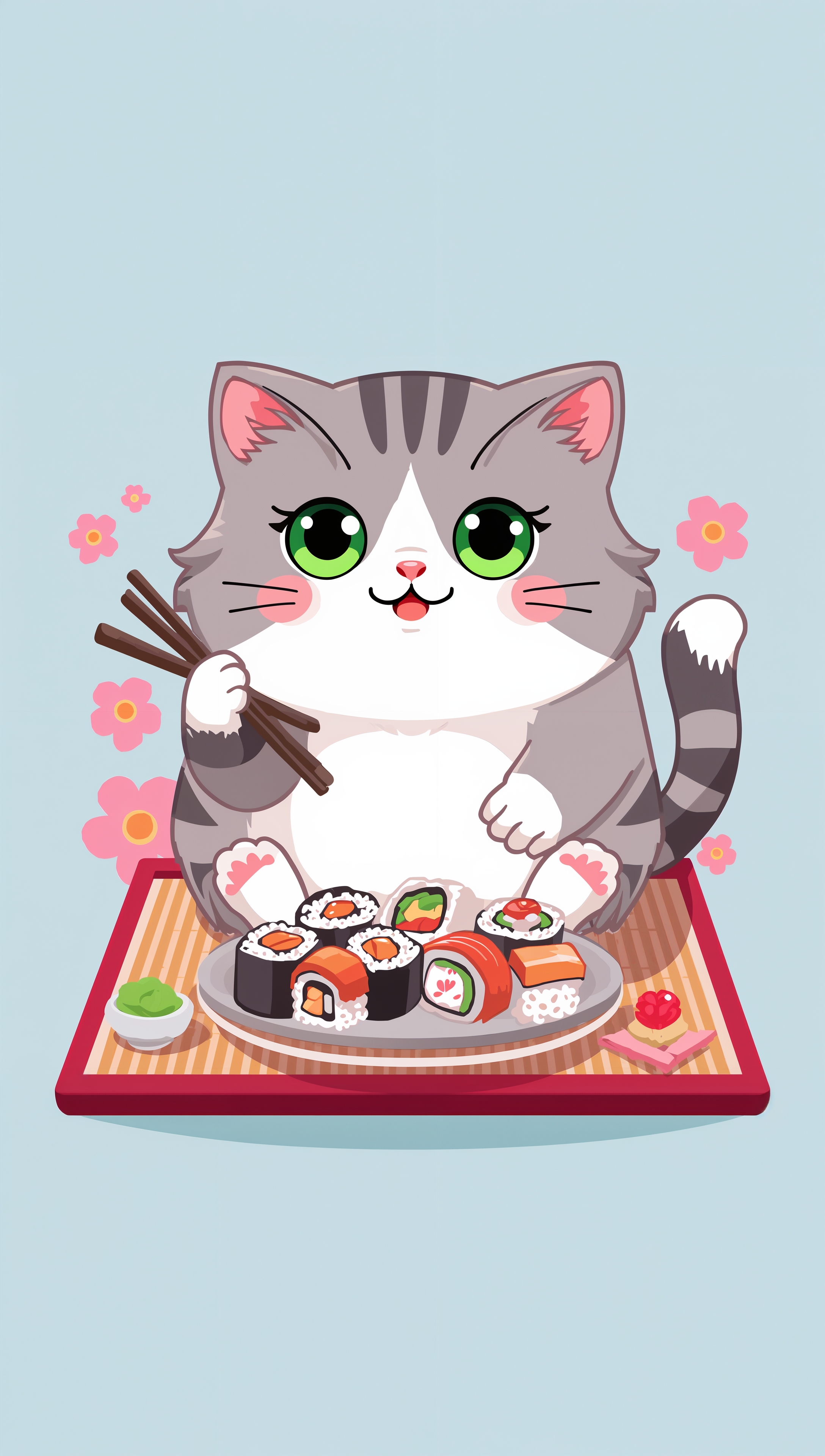 2176x3840 Cat iPhone wallpaper – chubby cat eating sushi