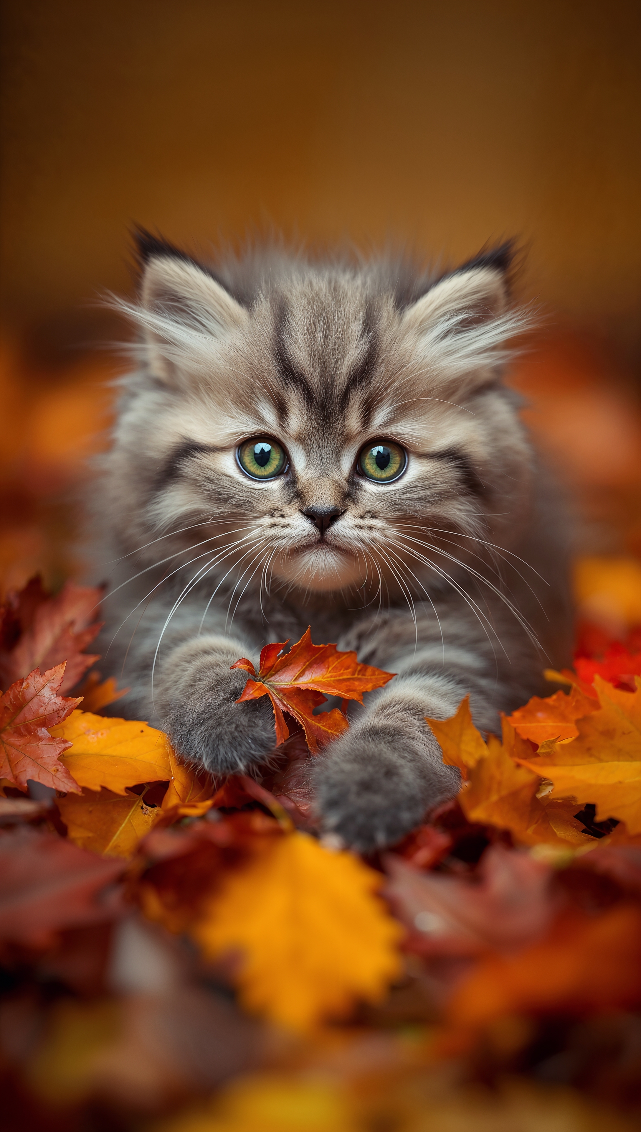 2176x3840 Cat iPhone wallpaper – kitten in autumn leaves