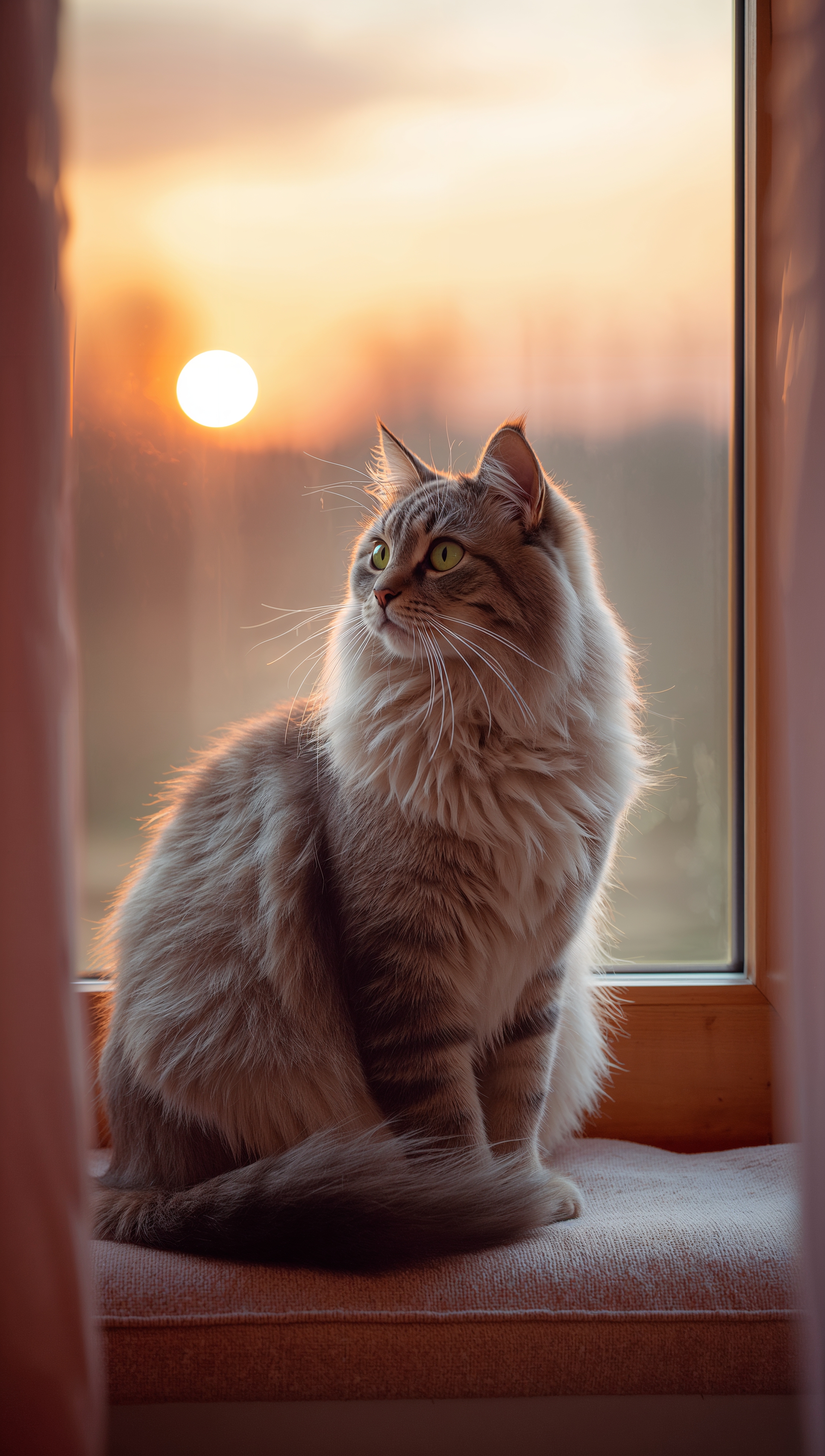 2176x3840 Cat iPhone wallpaper – cat by window at sunset
