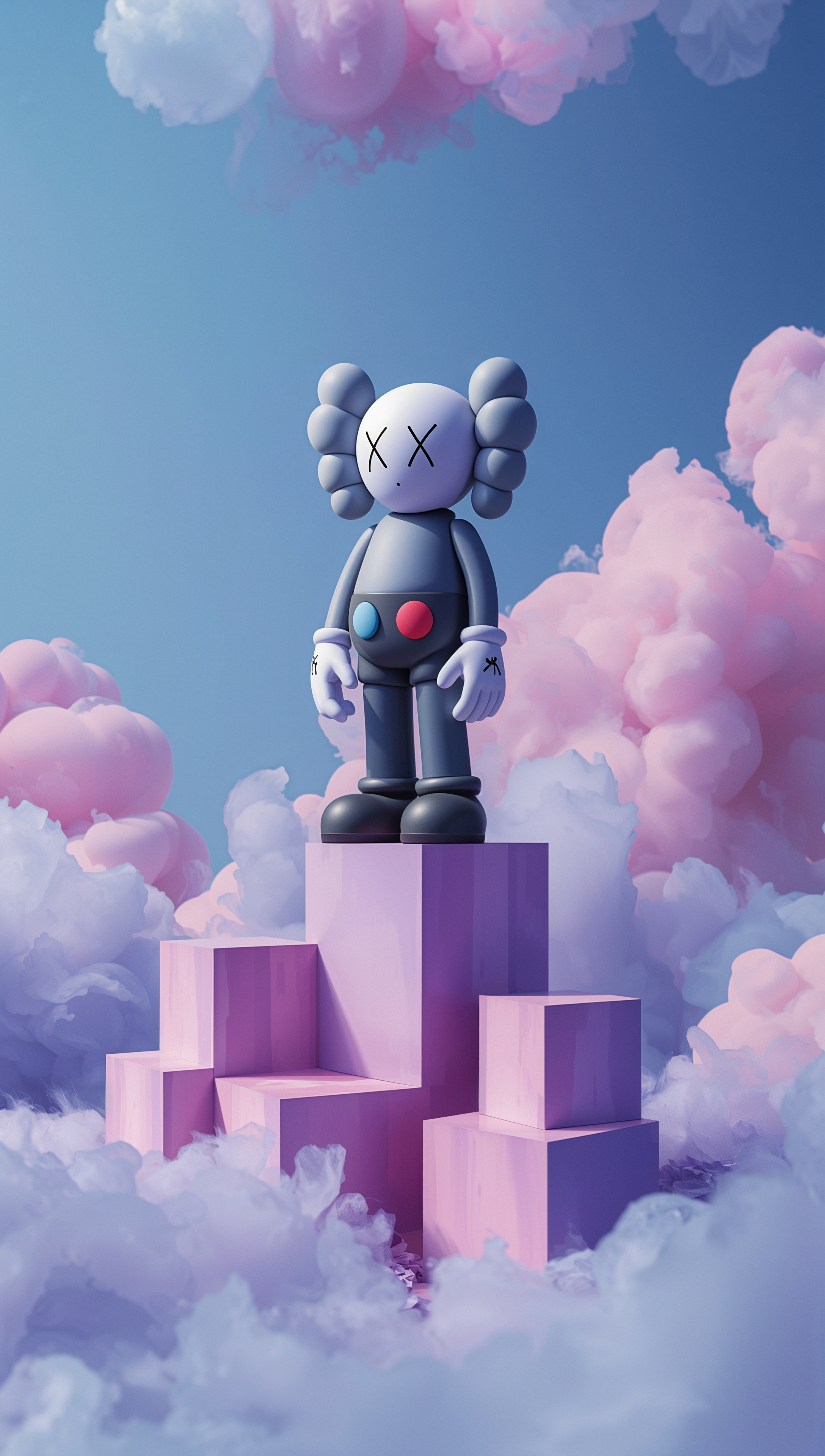 2176x3840 Kaws iPhone wallpaper – character in pastel clouds