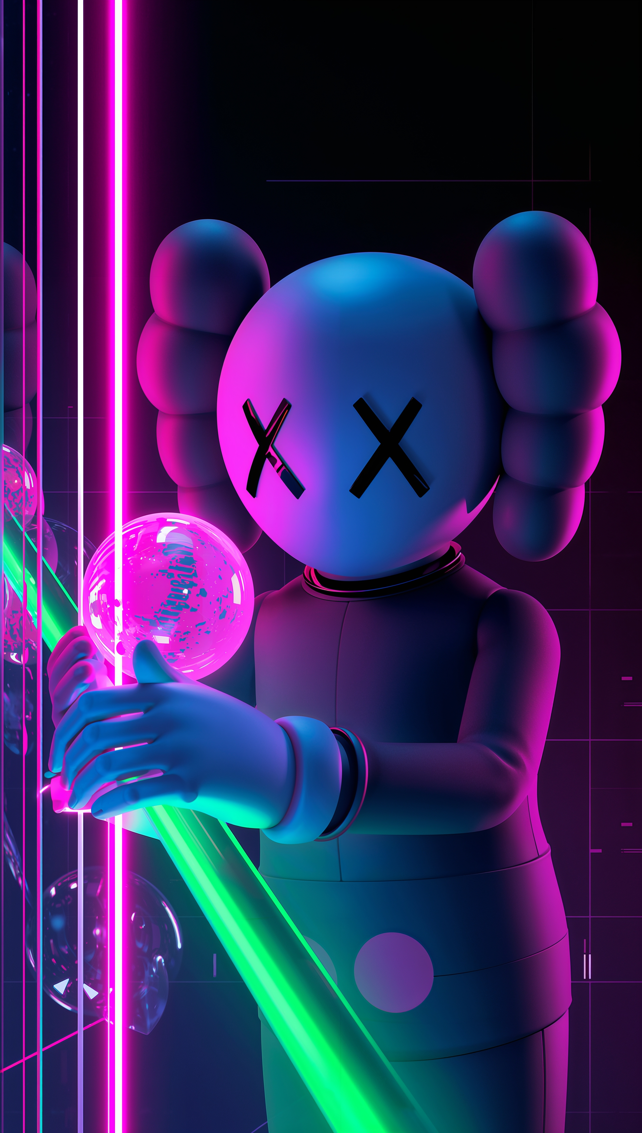2176x3840 Kaws iPhone wallpaper – futuristic neon interaction