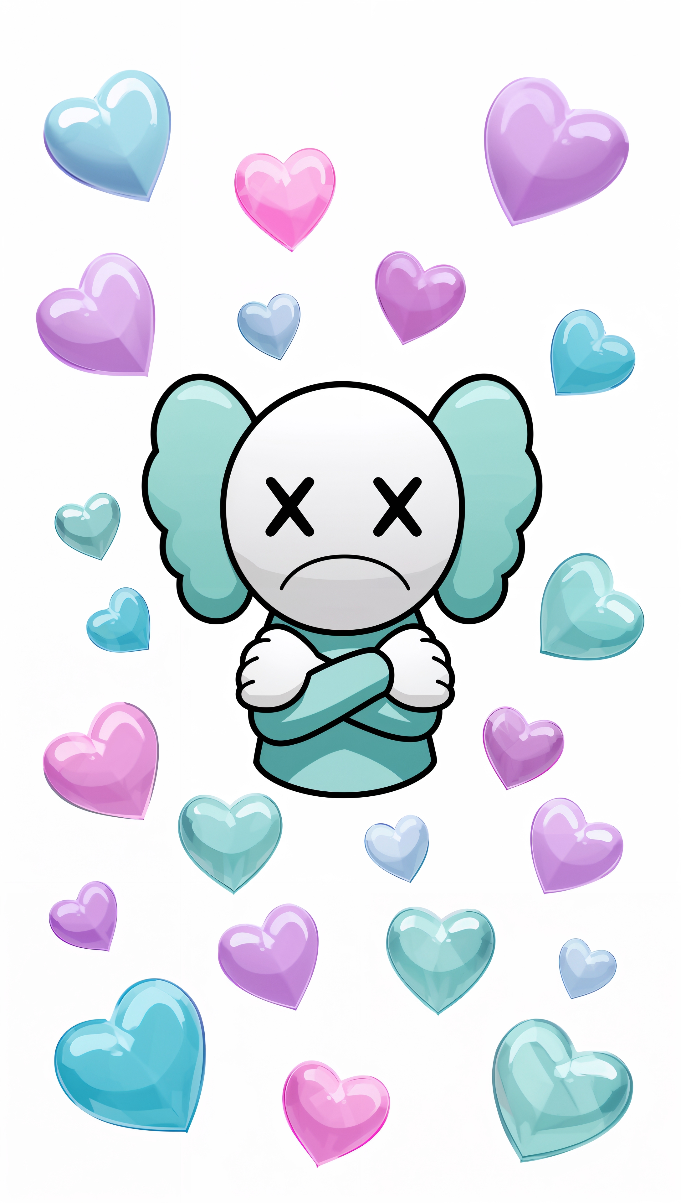 2176x3840 Kaws iPhone wallpaper – hearts and cartoon figure
