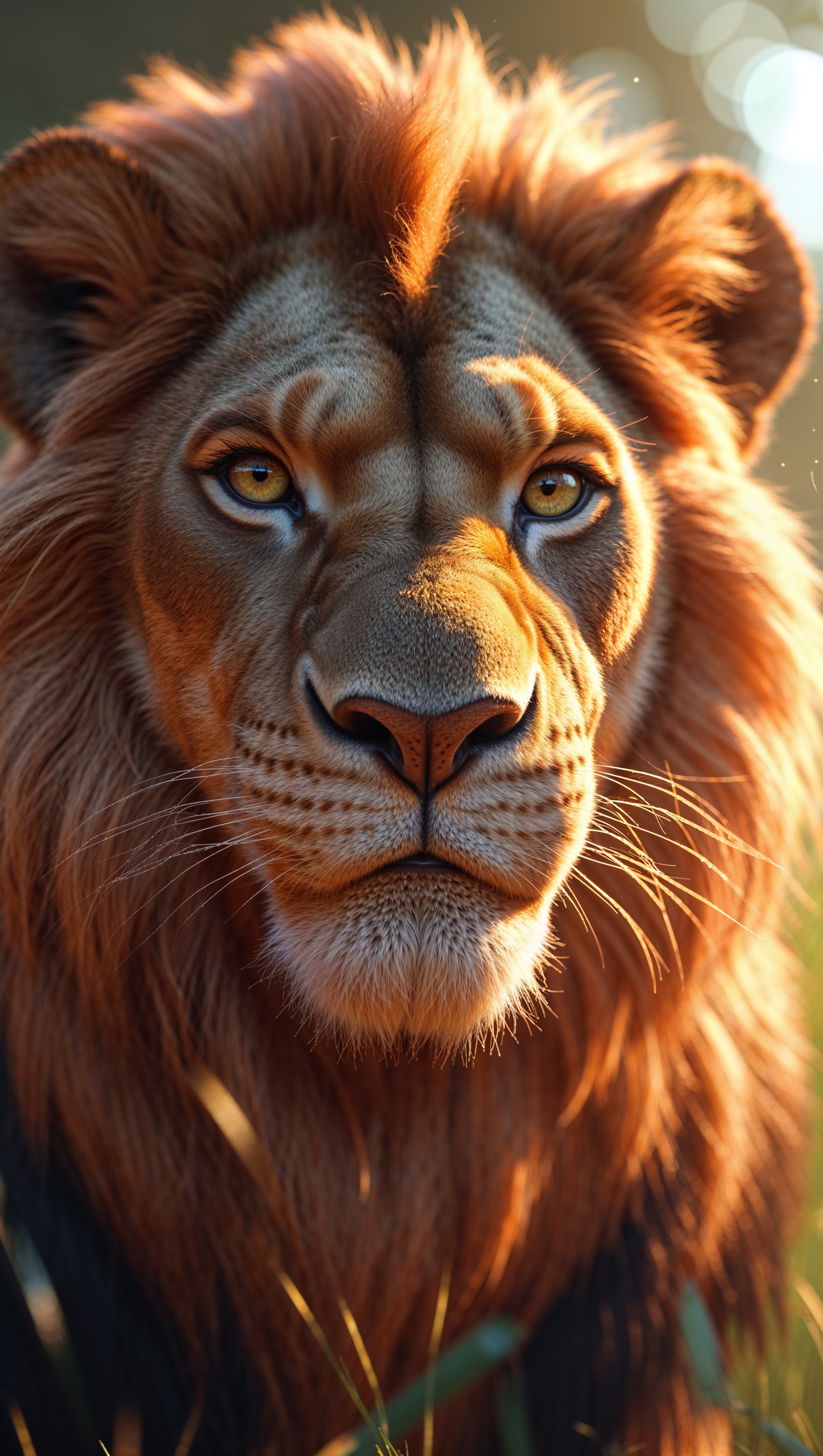 1664x2944 Close-up of Simba's face with natural light effects, iPhone wallpaper