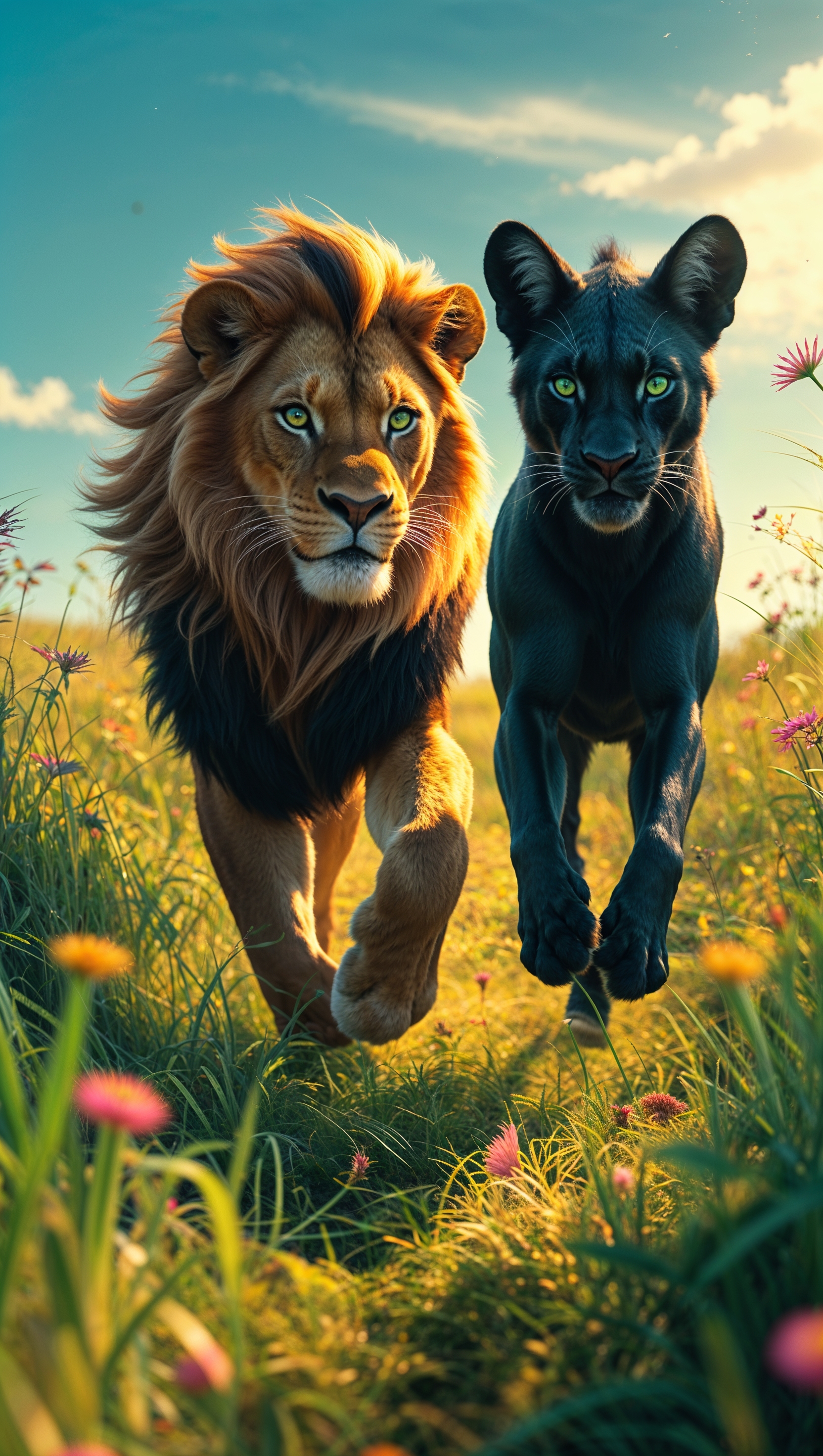 1664x2944 Simba and Nala running through a beautiful field, iPhone wallpaper