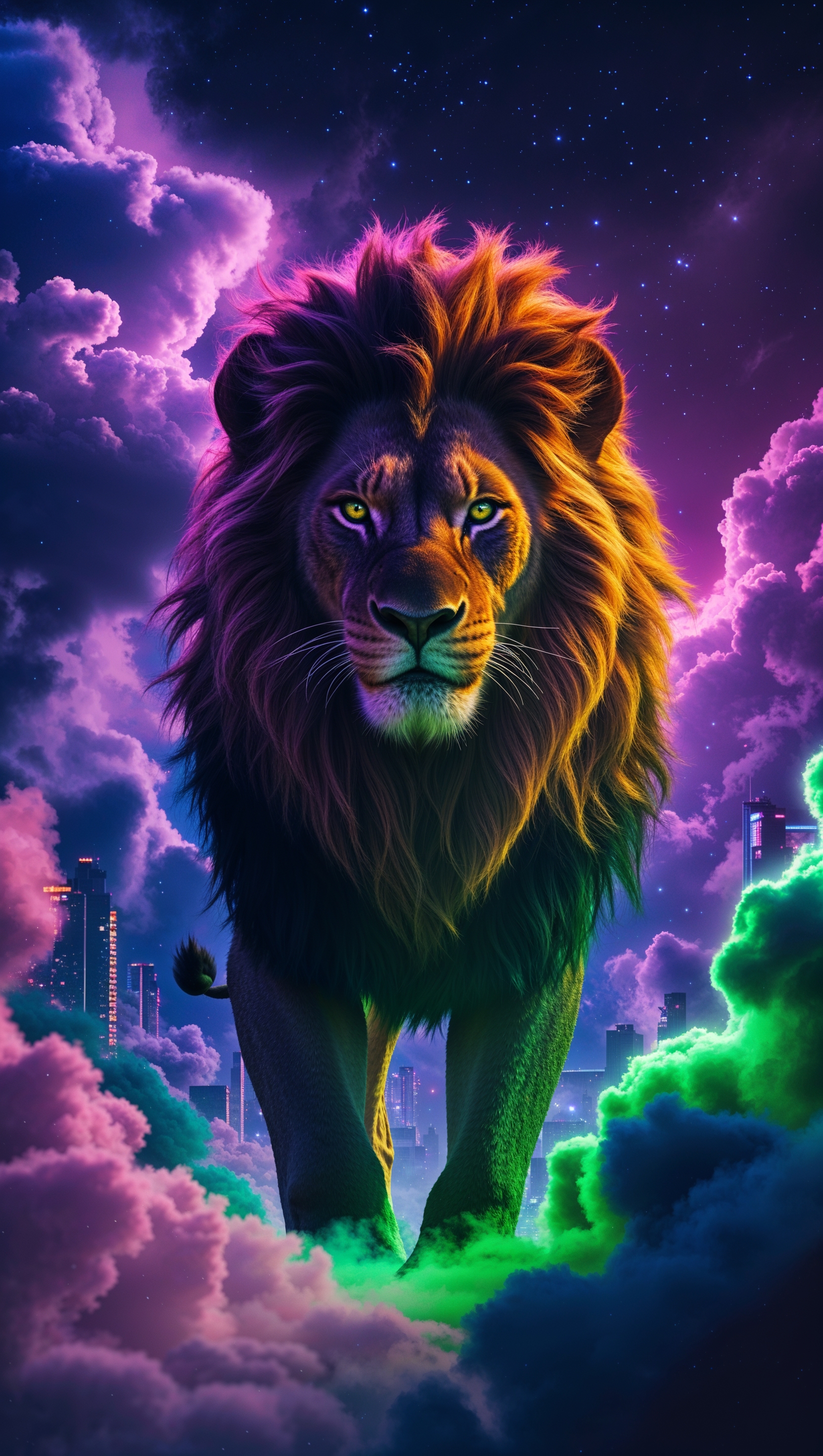 1664x2944 Lion King with neon light effects, iPhone wallpaper