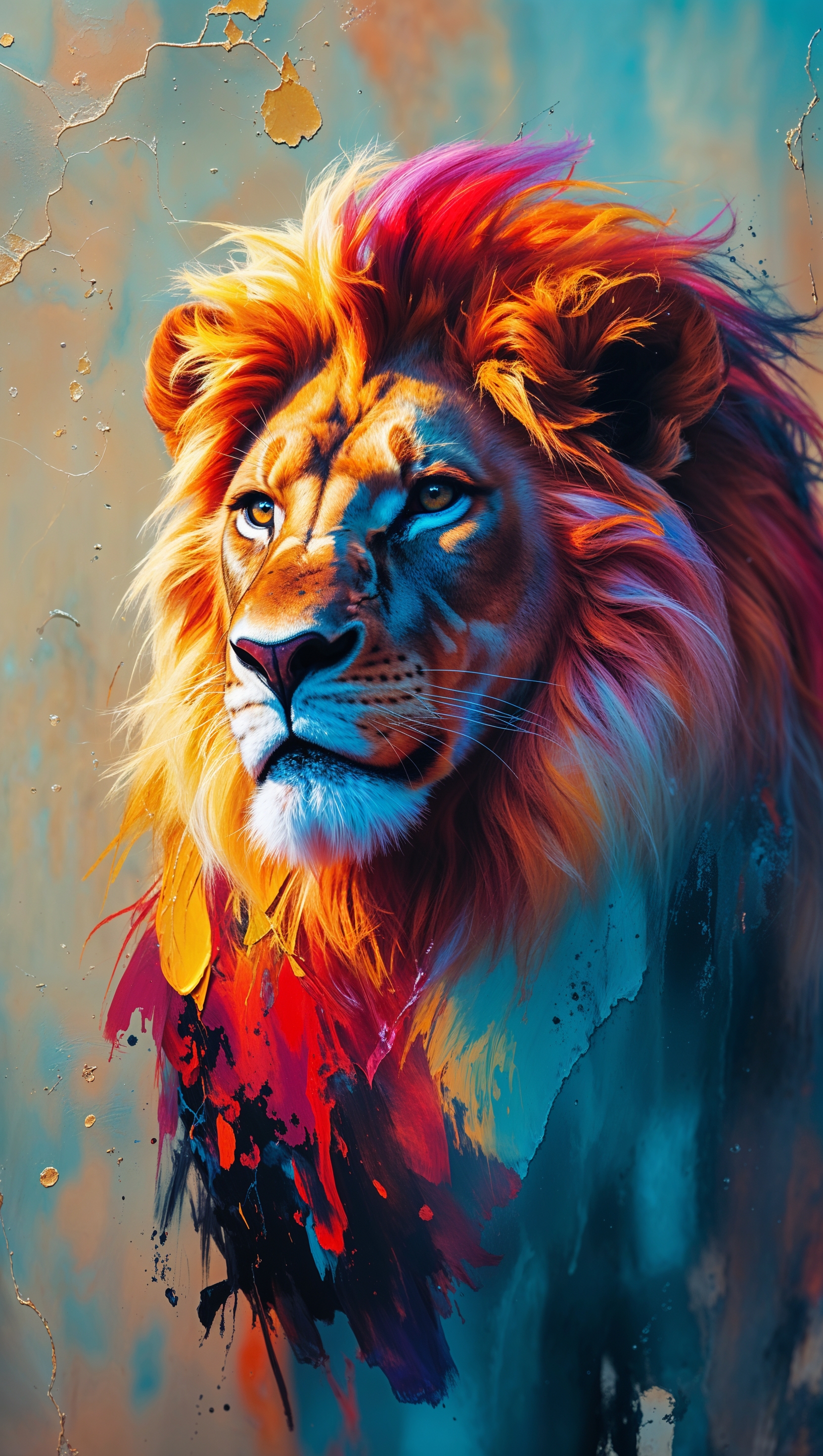 1664x2944 A colorful painting of Simba with artistic effects, iPhone wallpaper