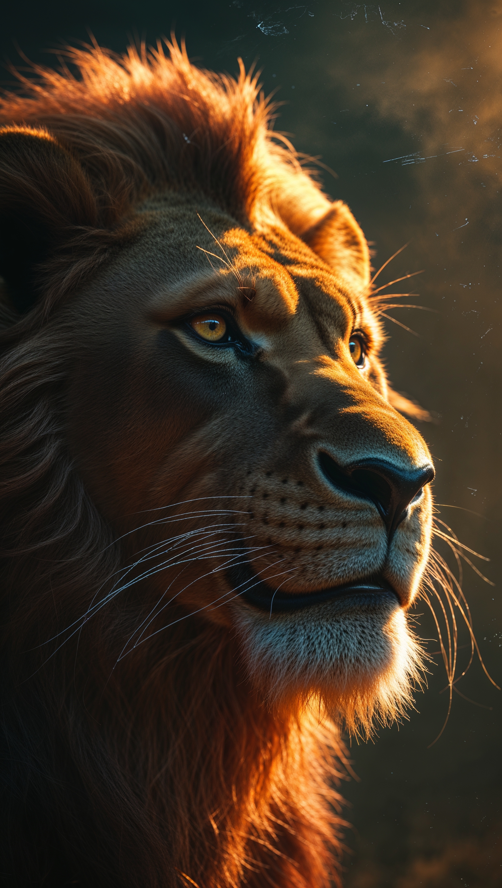1664x2944 Close-up of Mufasa’s face with dramatic lighting, iPhone wallpaper