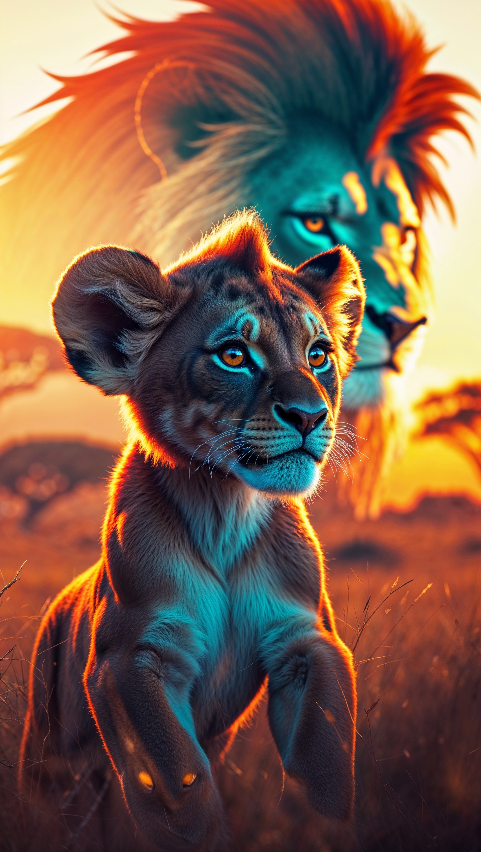 1664x2944 A combined image of young and adult Simba, iPhone wallpaper