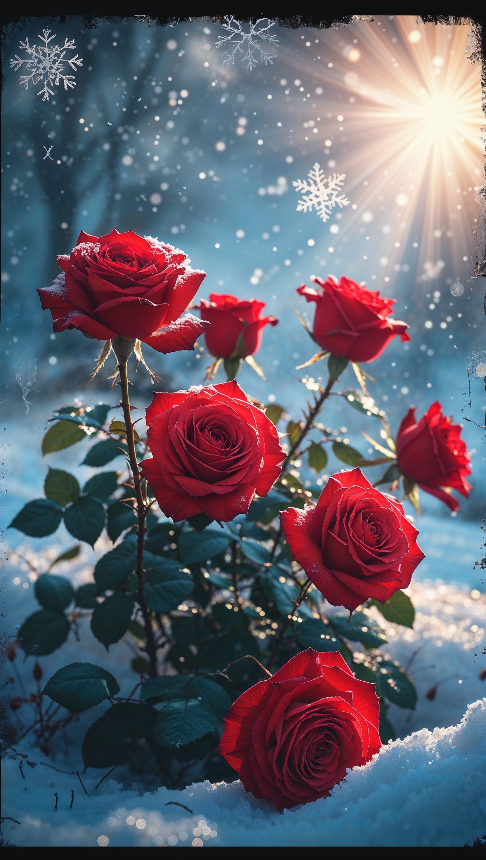 1664x2944 iPhone wallpaper for February with a snowy background and roses