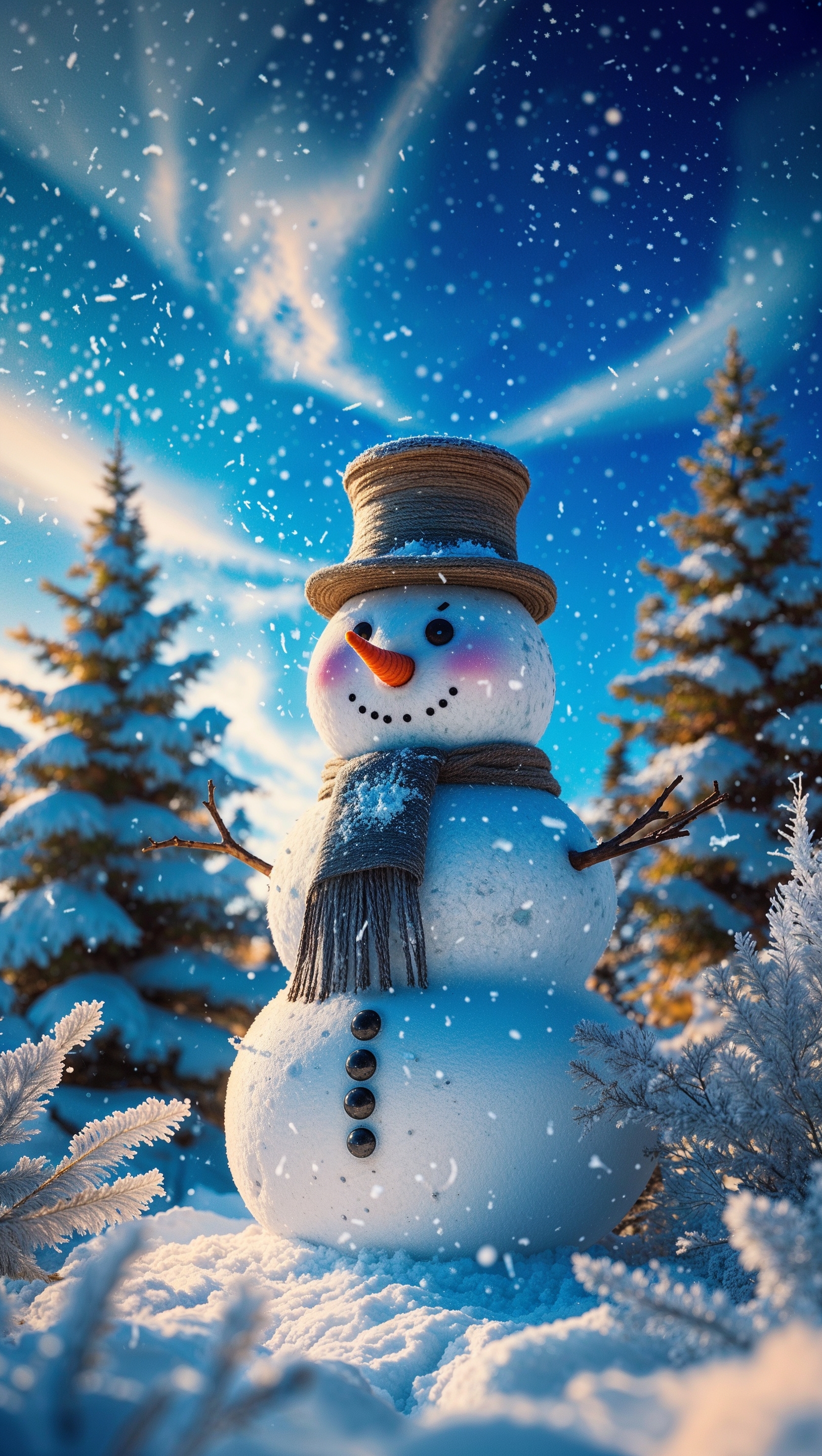 1664x2944 iPhone wallpaper with a winter theme and a snowman in February