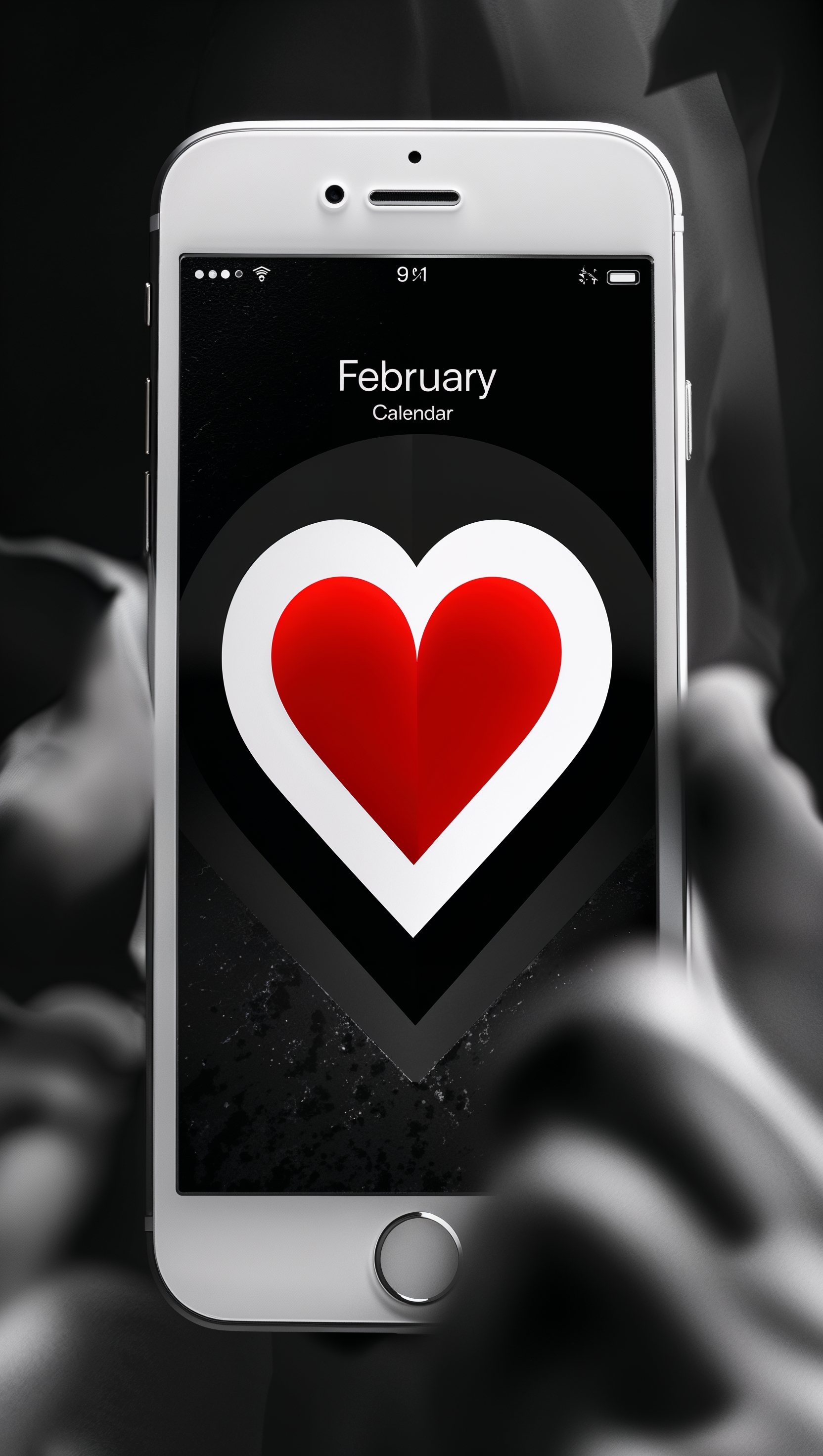 1664x2944 February iPhone wallpaper with black and white design and a bold red heart