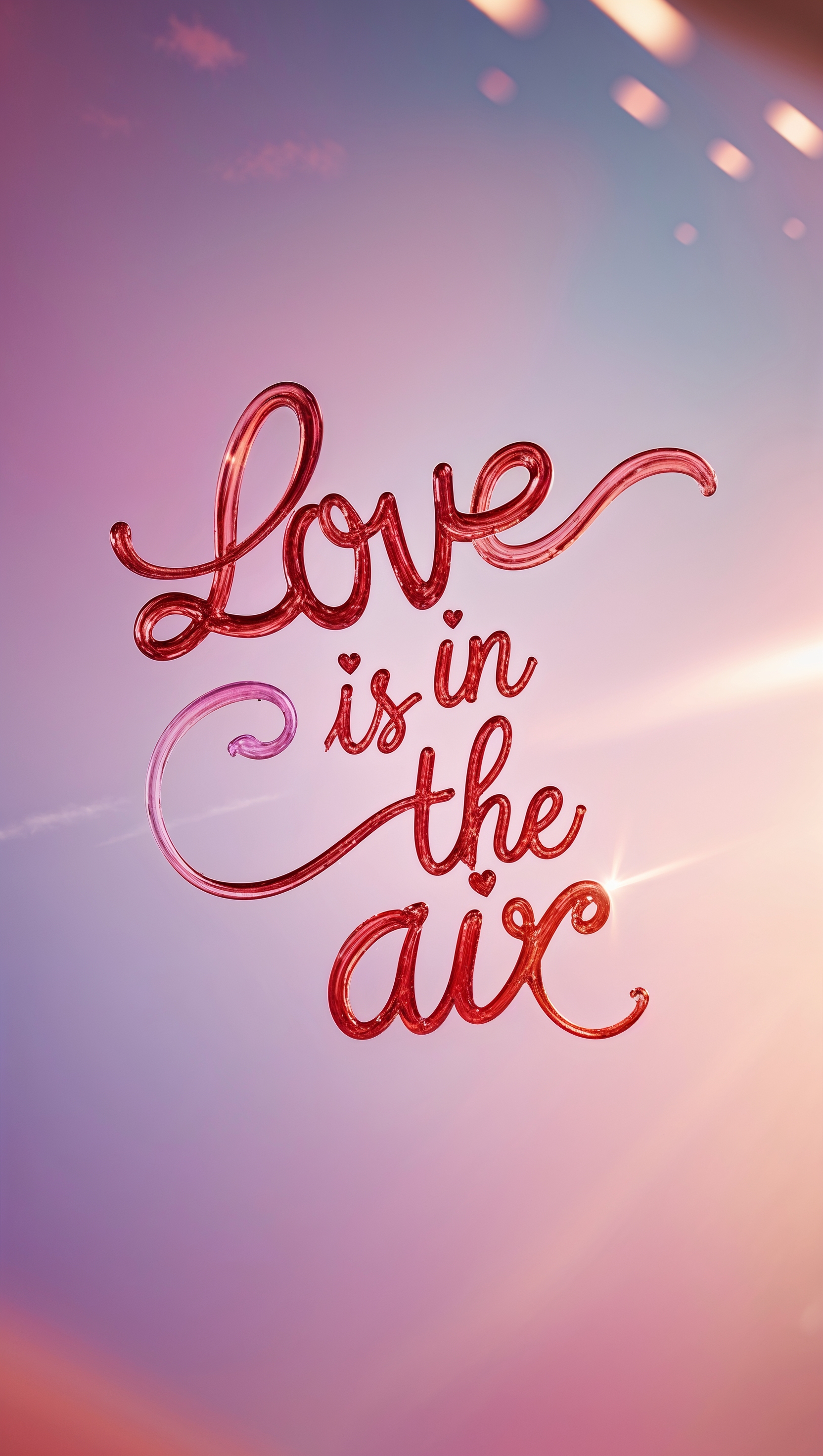 1664x2944 February iPhone wallpaper with a handwritten "Love is in the air" design