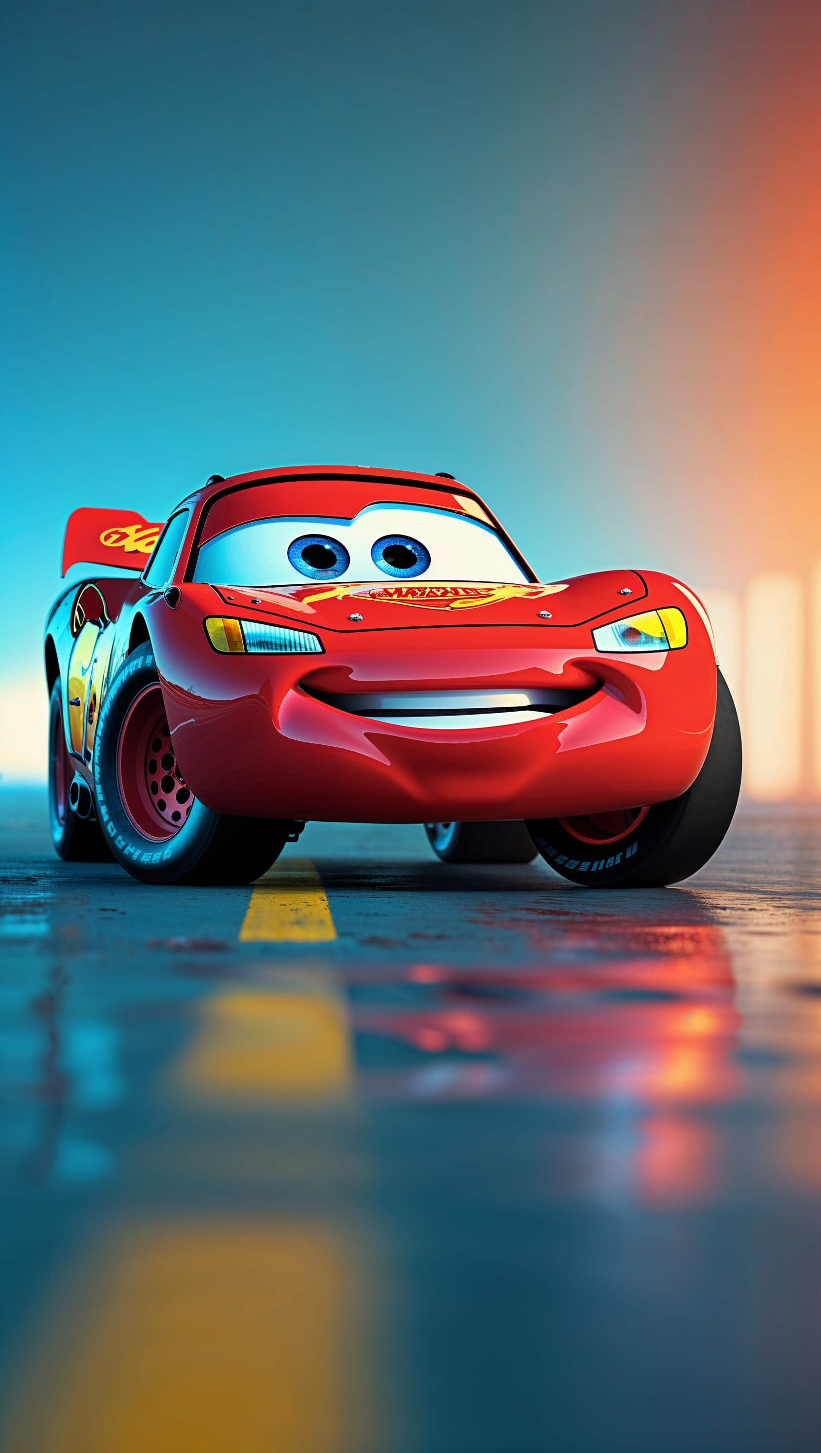 1664x2944 Lightning McQueen with a cartoon-style design for iPhone wallpaper