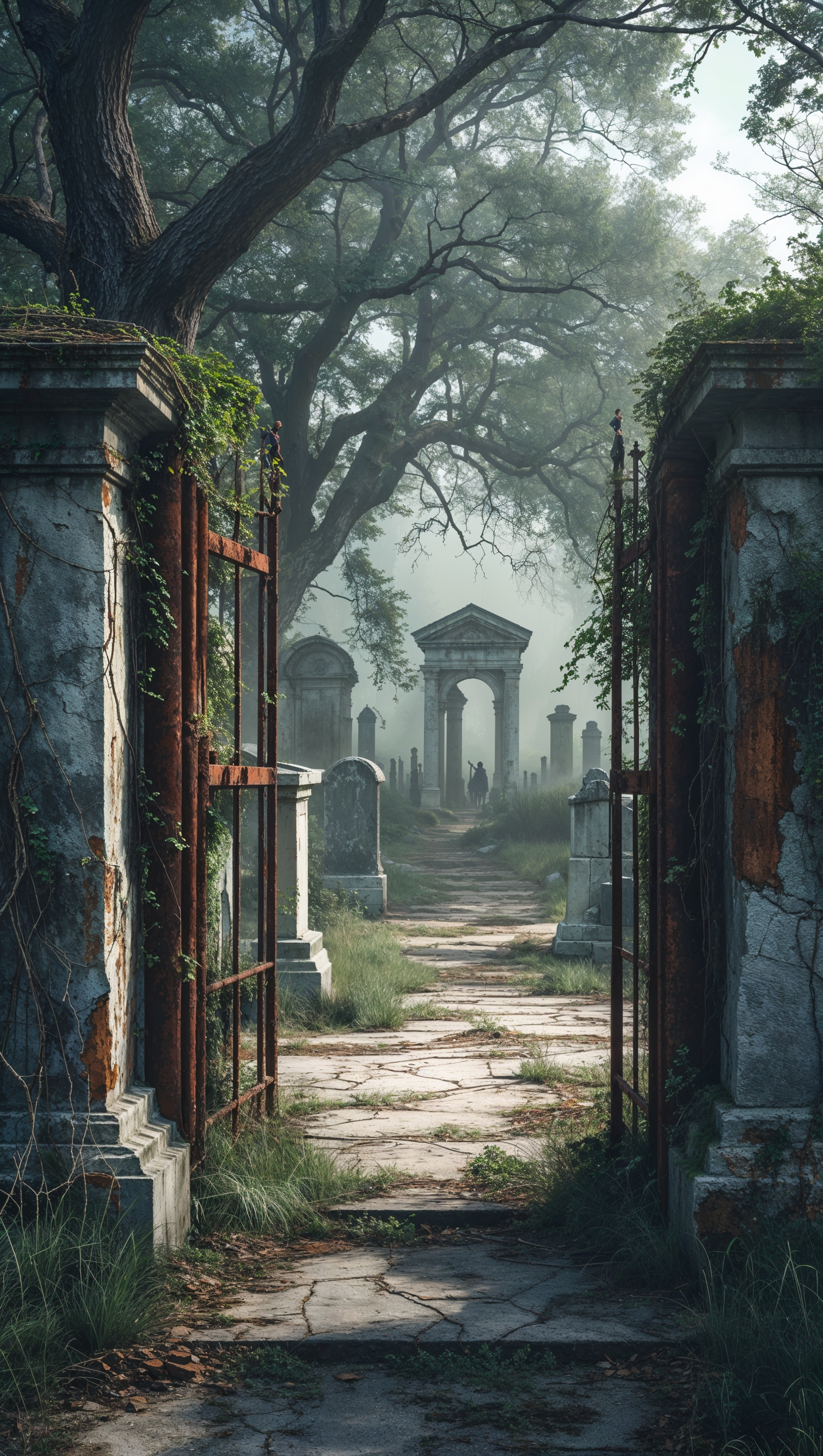 1664x2944 Rusted gates of an abandoned cemetery, slightly open
