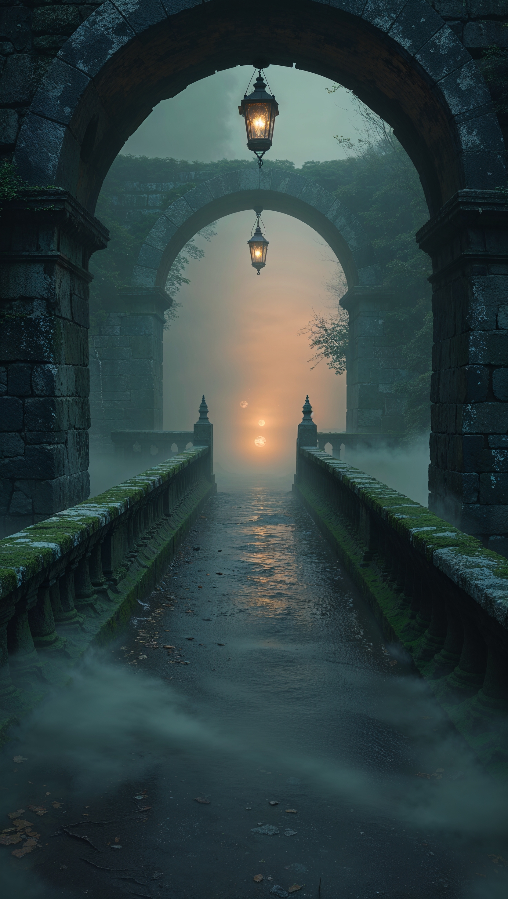 1664x2944 Foggy bridge disappearing into the darkness, unknown destination