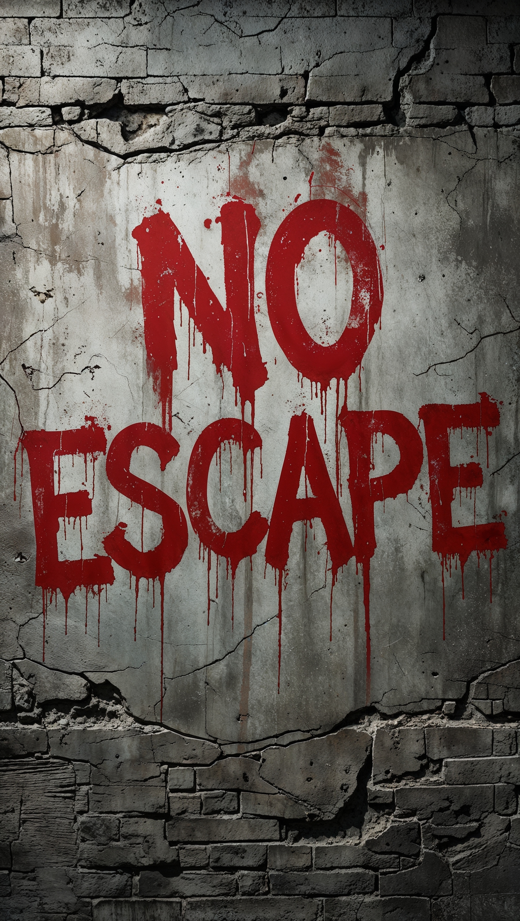 1664x2944 Faded "No Escape" message scrawled on a wall in red