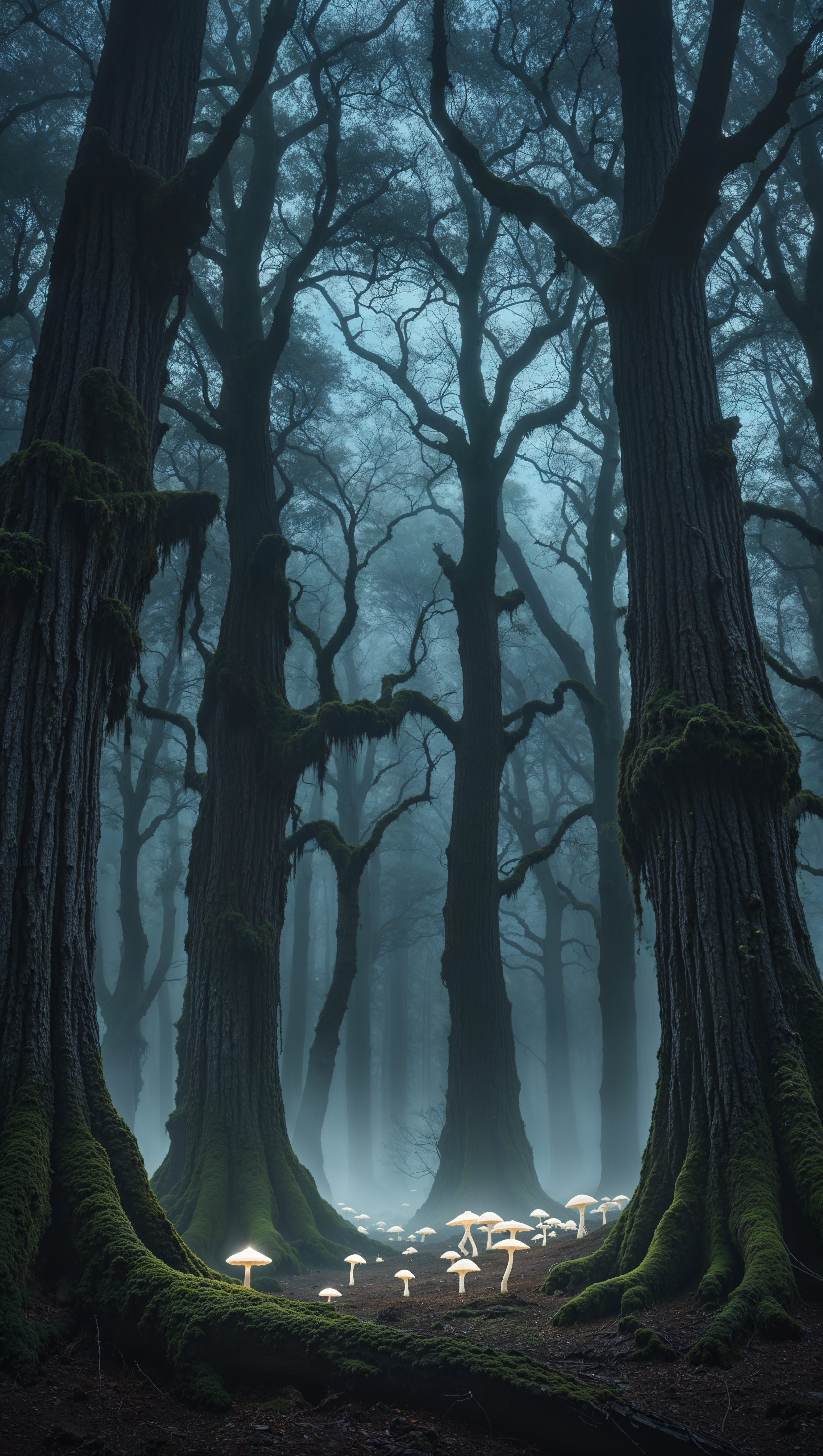 1664x2944 Dark forest with eerie fog creeping between the trees